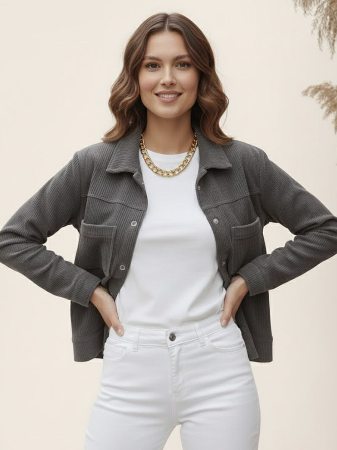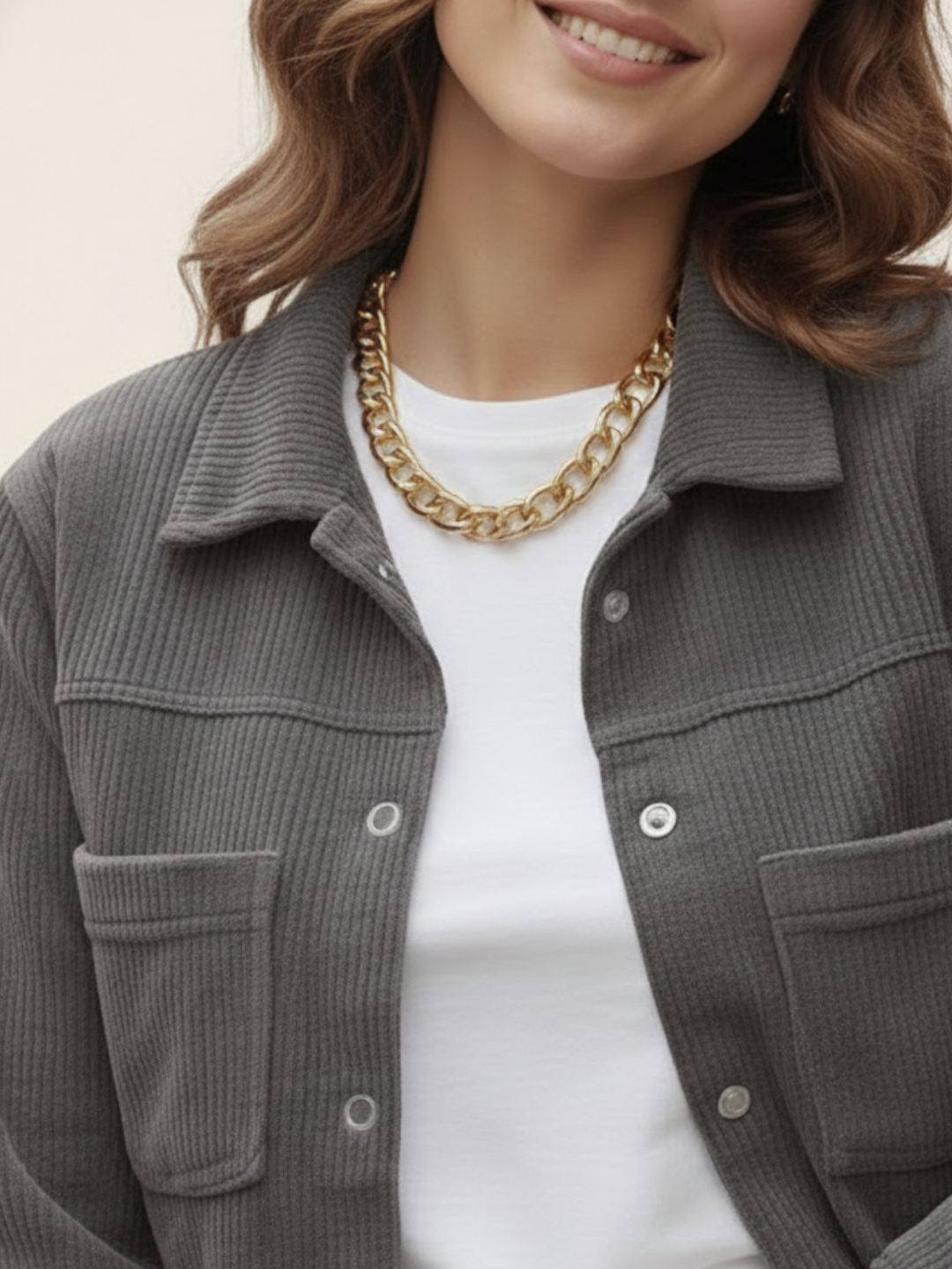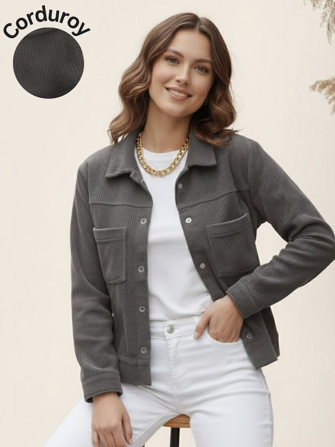 Grey Regular Fit Corduroy Jacket