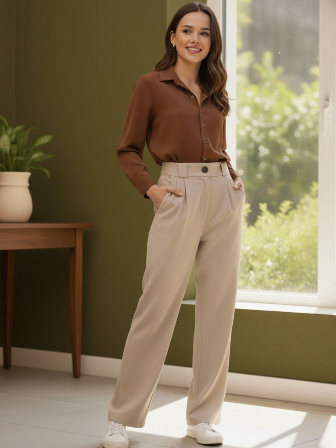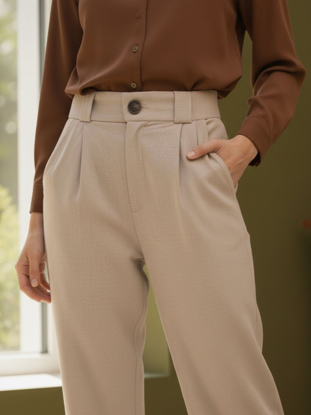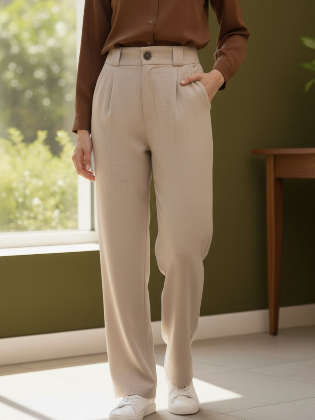 Cream Linen Korean Pants | Comfortable Straight Fit Pants