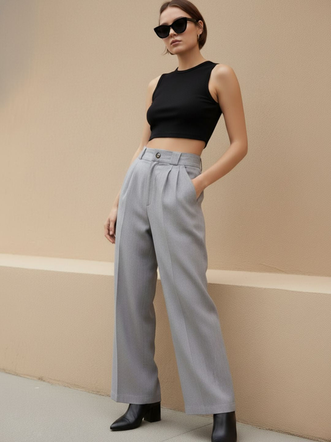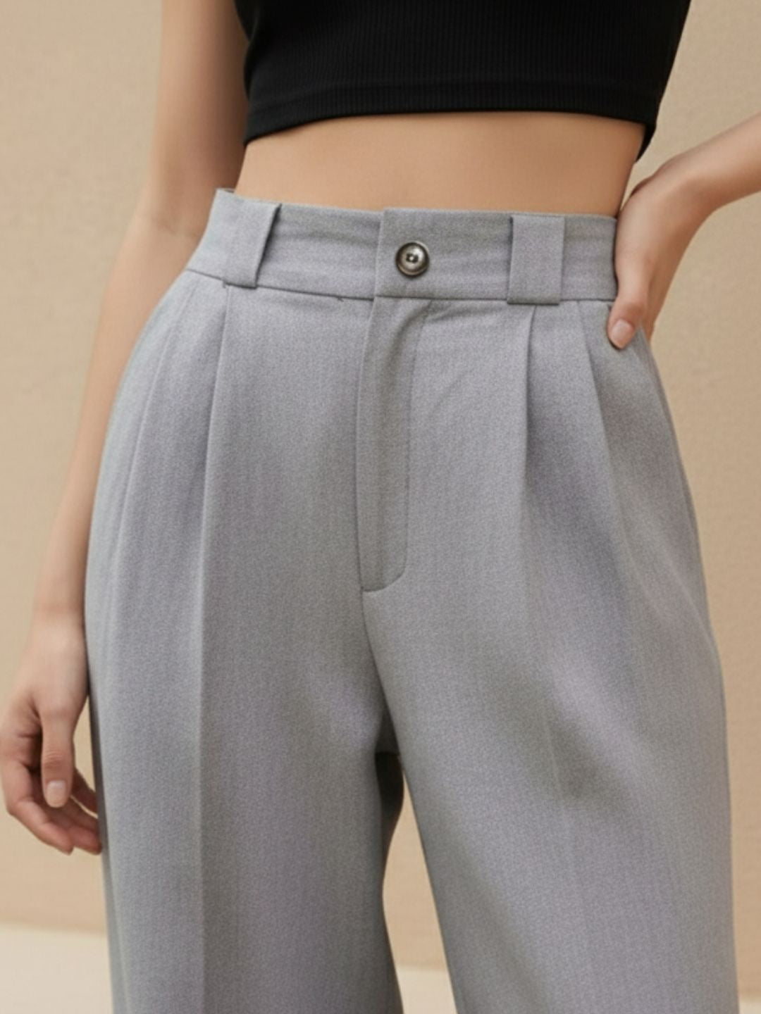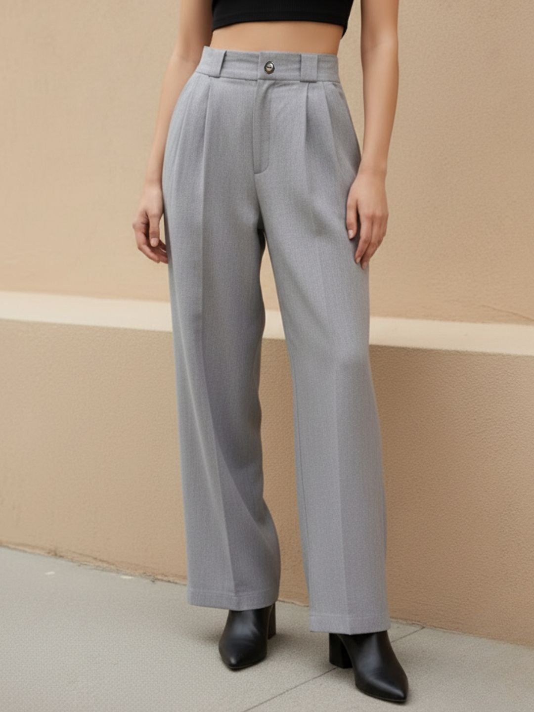 Rigo presents Womens  Fusion Linen High-Waist Pleated Straight Fit Pants, designed to blend modern tailoring with breathable comfort. Crafted from a premium linen-blend fabric, these pants offer a soft hand feel, natural texture, and all-day ease, making them perfect for both work and smart casual wear. Featuring a high-waist silhouette with front pleats, this style enhances structure while allowing comfortable movement. The straight-fit leg creates a clean, elongated look, while the functional side pockets add everyday practicality. Finished with a button closure and belt loops, these fusion linen pants pair effortlessly with shirts, blouses, kurtas, and crop tops. Whether styled for office hours or relaxed weekend outings, these pants deliver a timeless, versatile appeal.