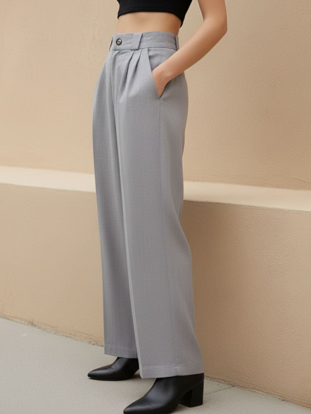 Grey Linen Korean Pants | Comfortable Straight Fit Pants