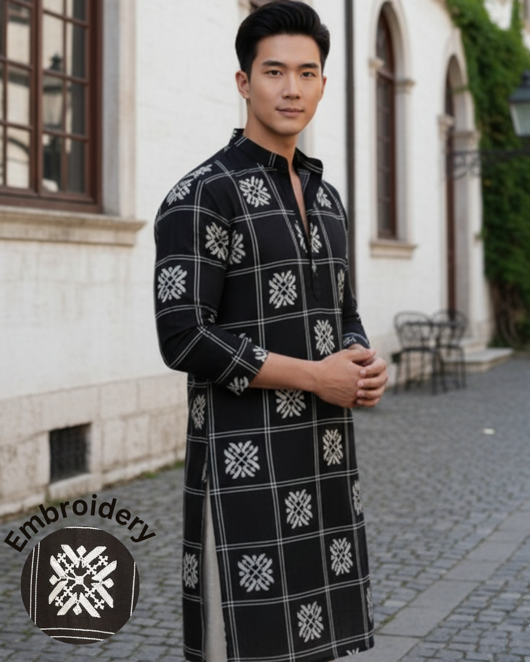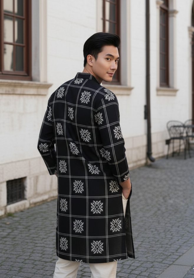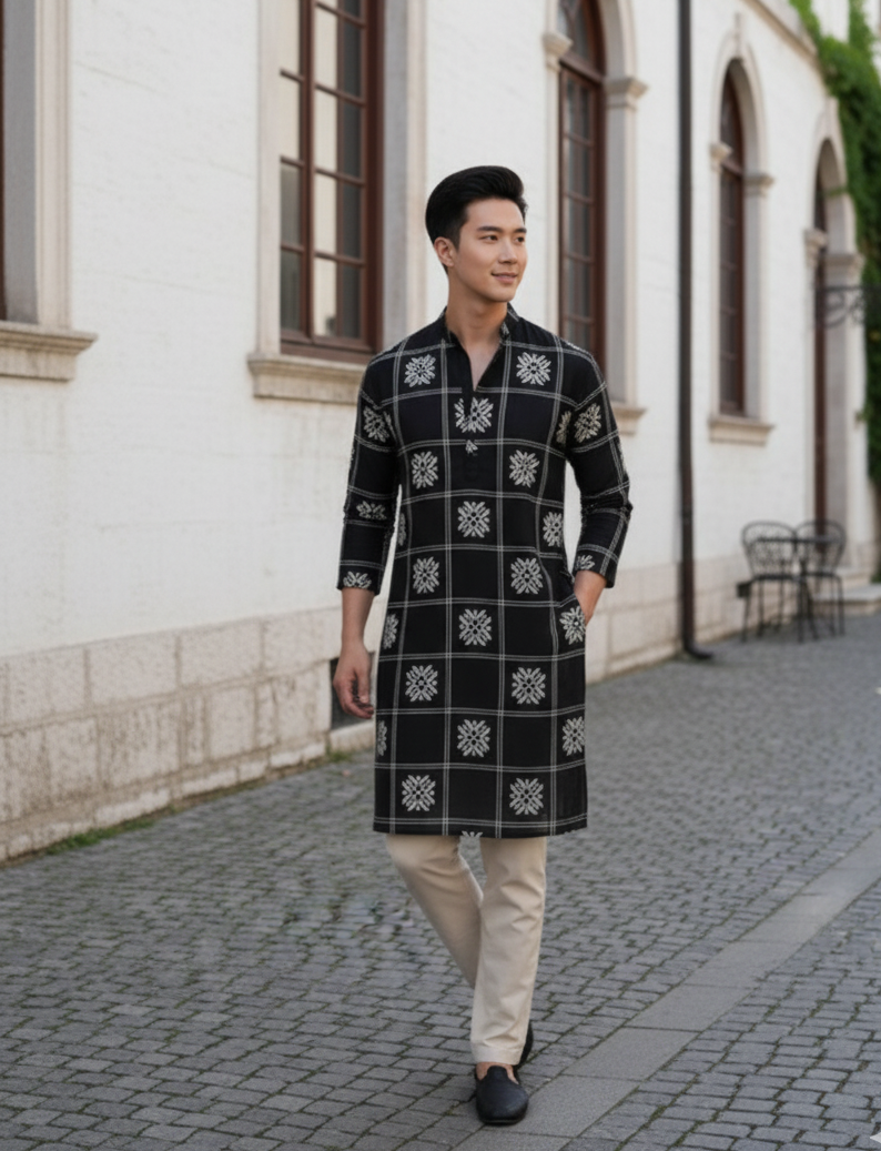 Black Embroidered Loose Fit Cotton Kurta