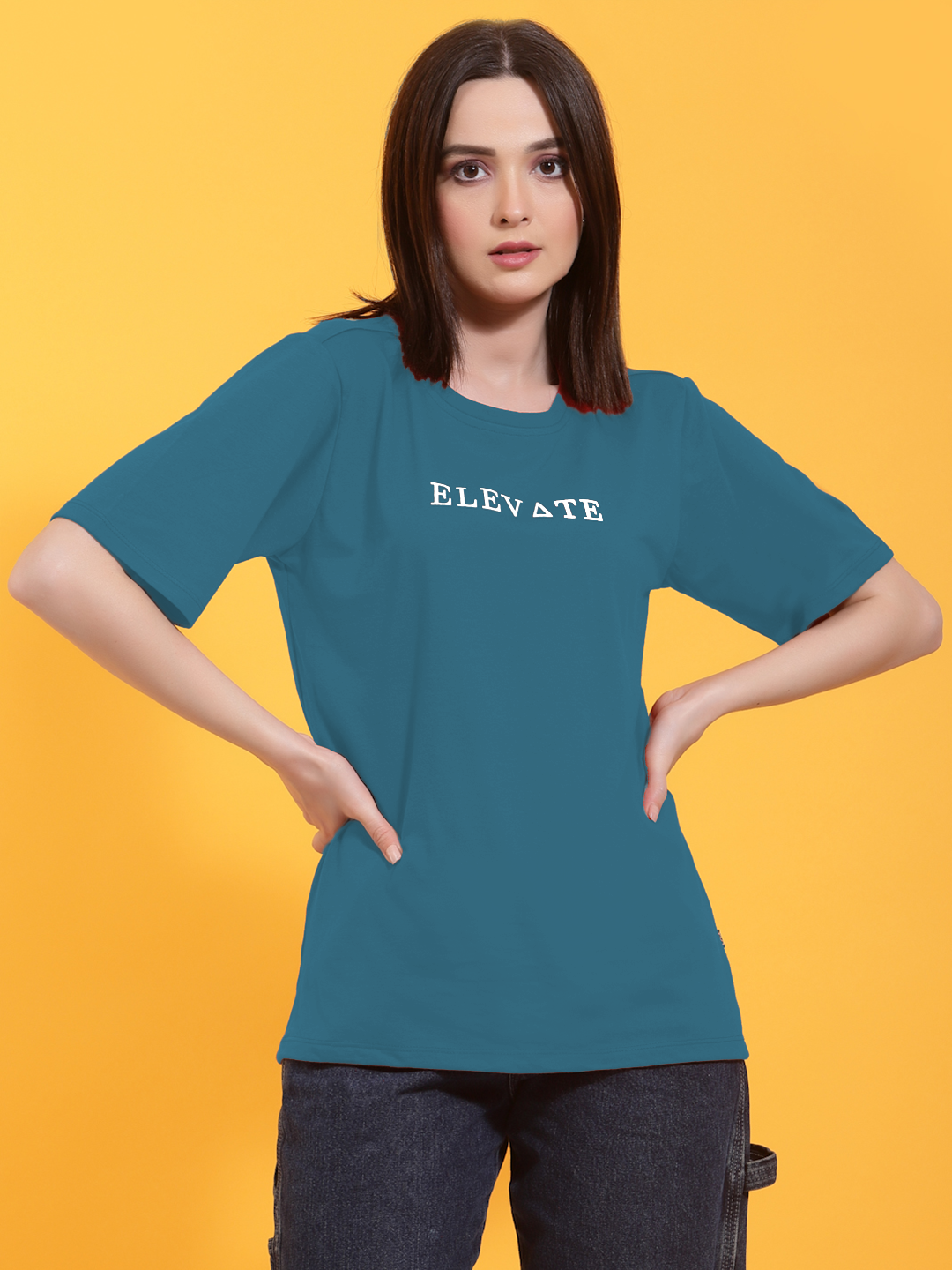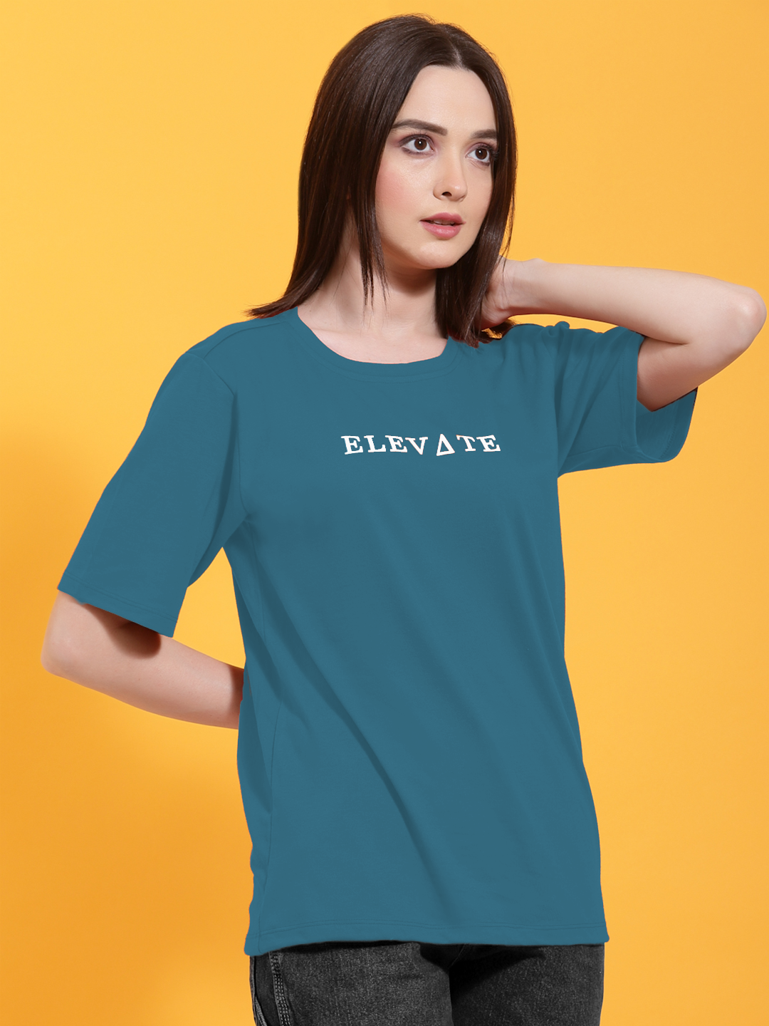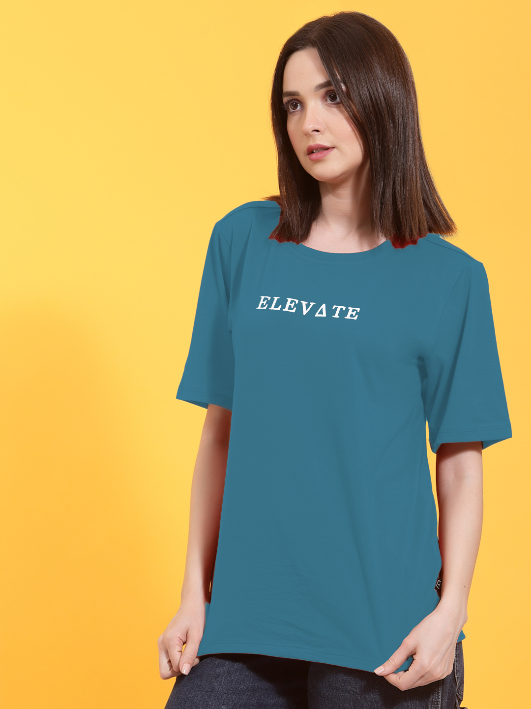 Typography Print Oversized Teal T-shirt