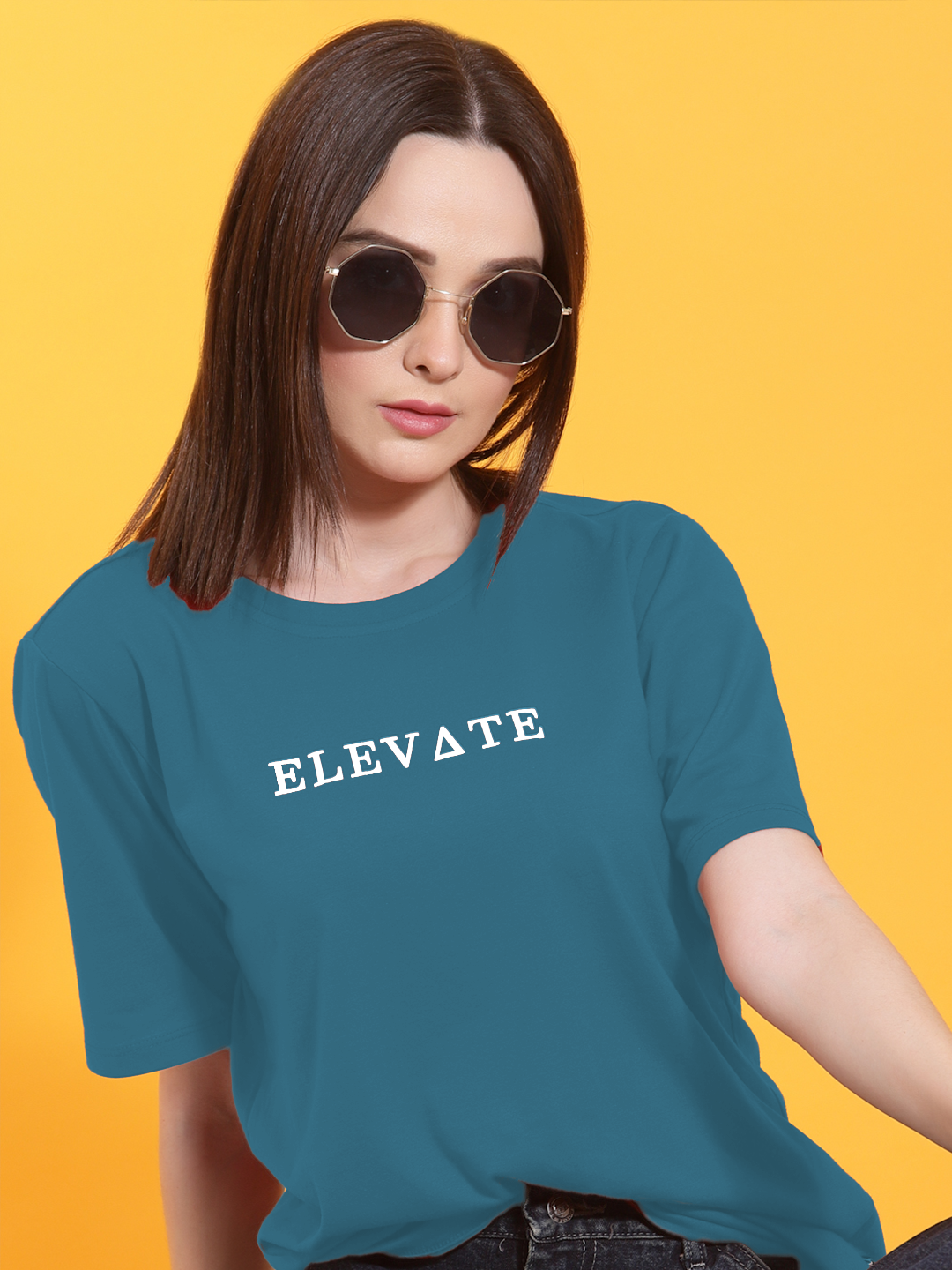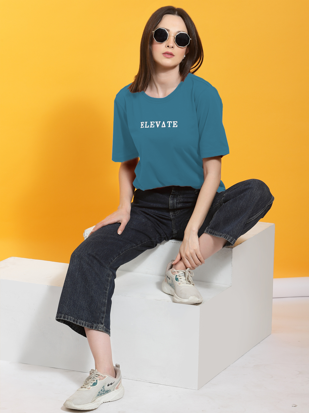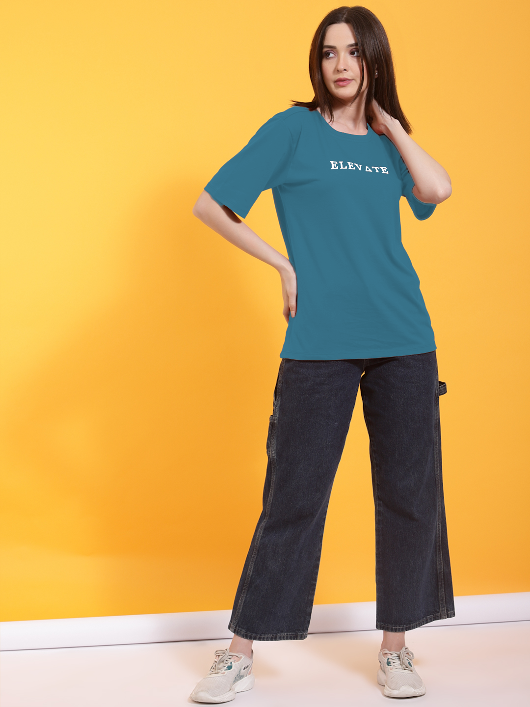 Typography Print Oversized Teal T-shirt