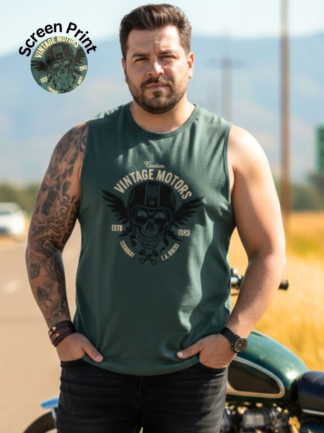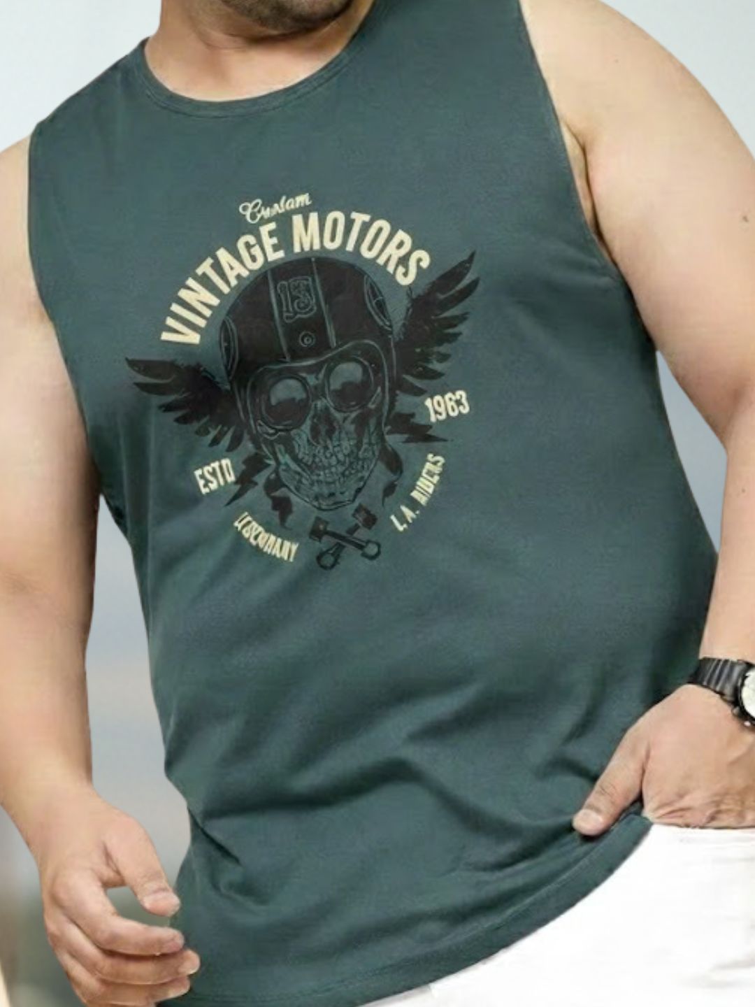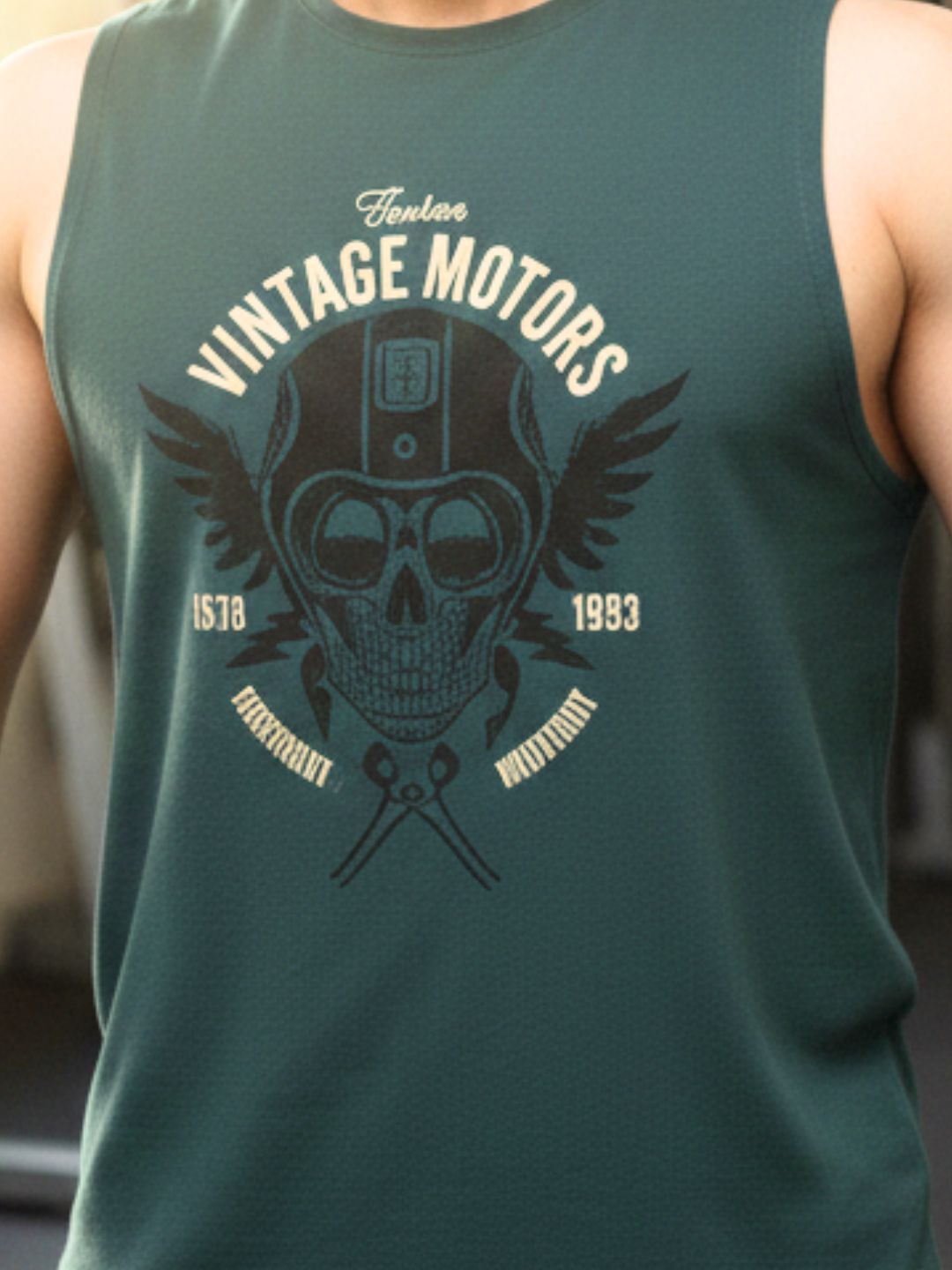 Plus Size Teal Jersey Graphic Print Regular Fit Vest T-Shirt