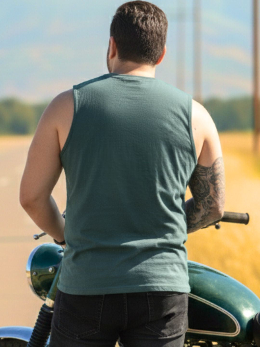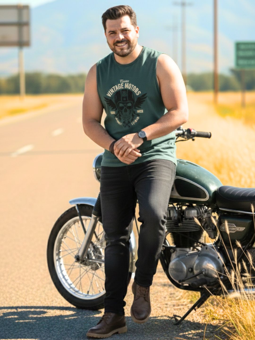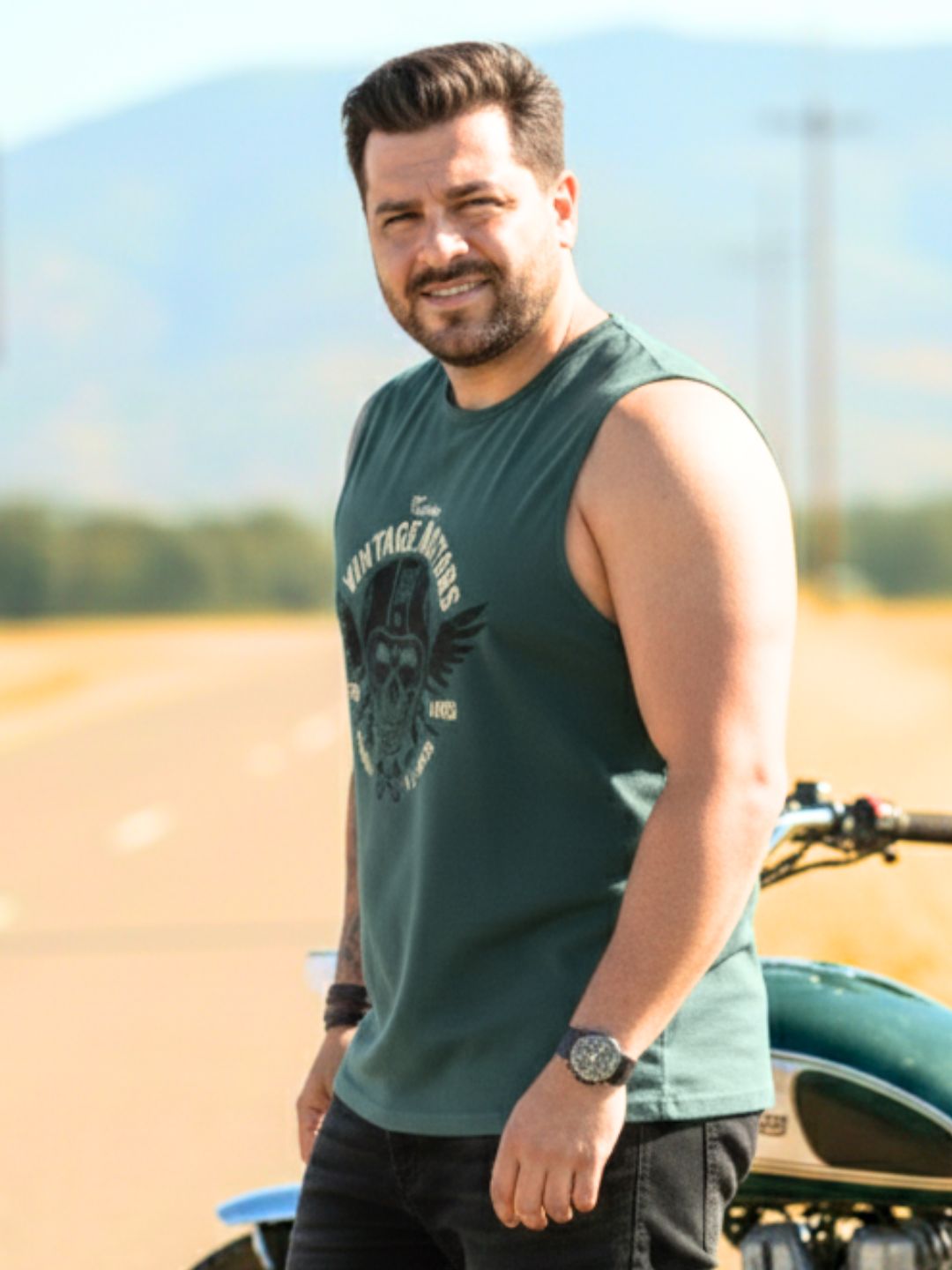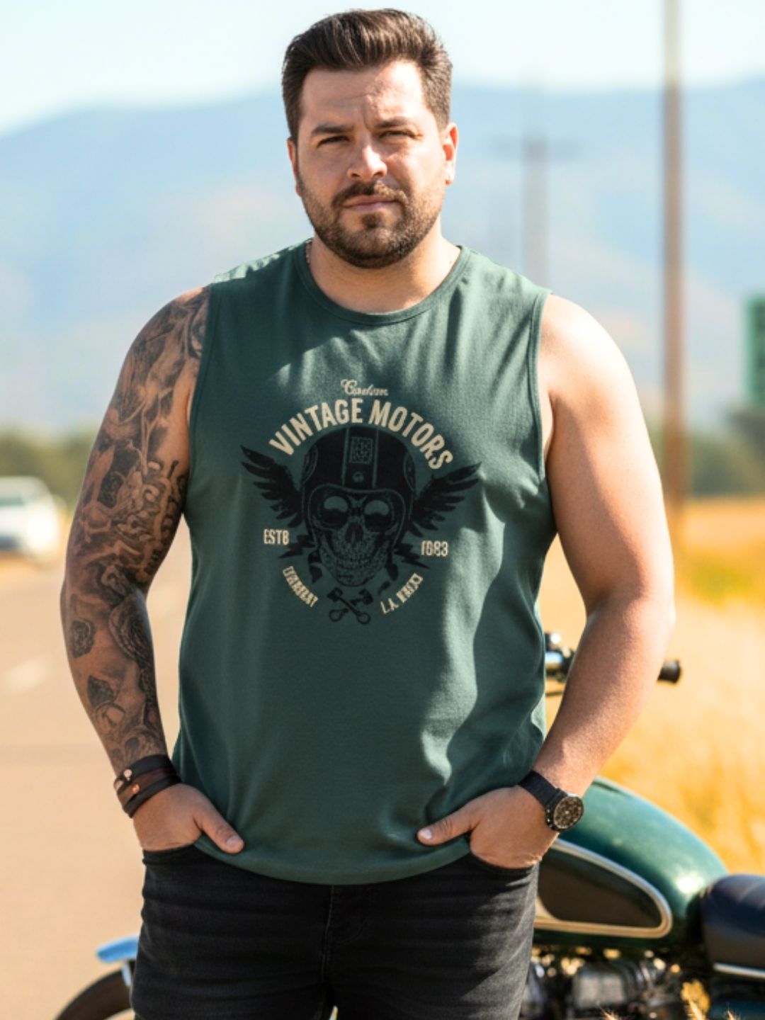 Plus Size Teal Jersey Graphic Print Regular Fit Vest T-Shirt