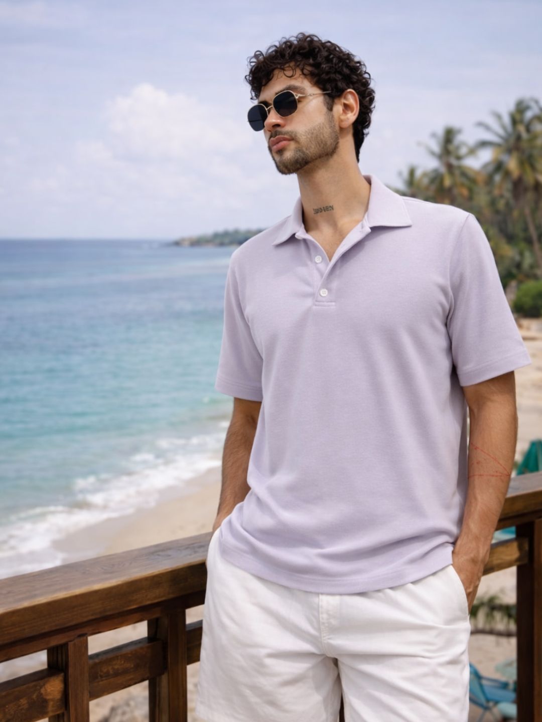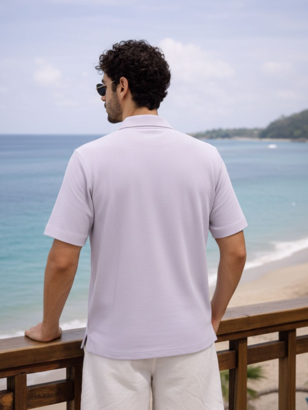 Light Purple Solid Pique Cut Away Collar Regular Fit Polo T-Shirt