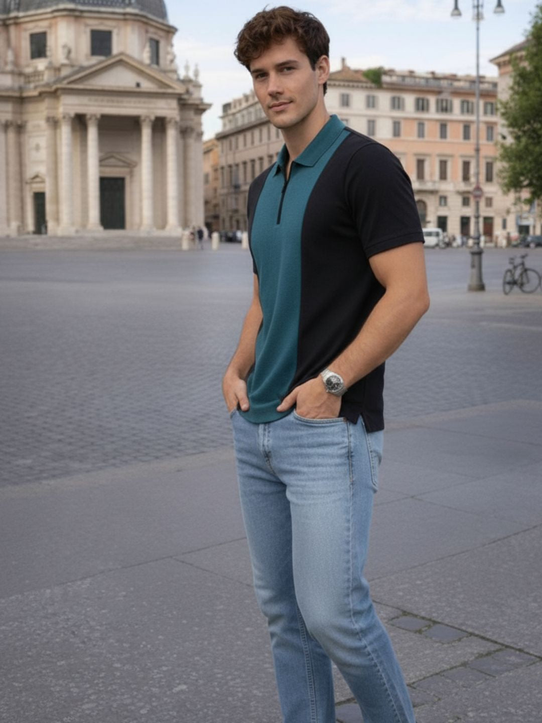 Teal Pique Cut Away Collar Regular Fit Polo T-Shirt