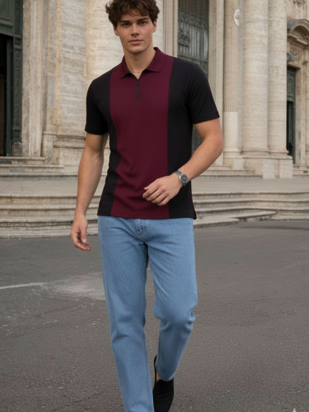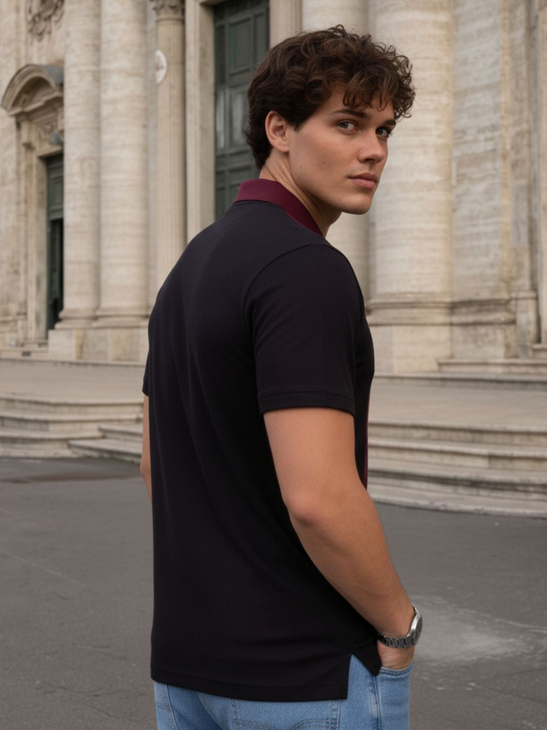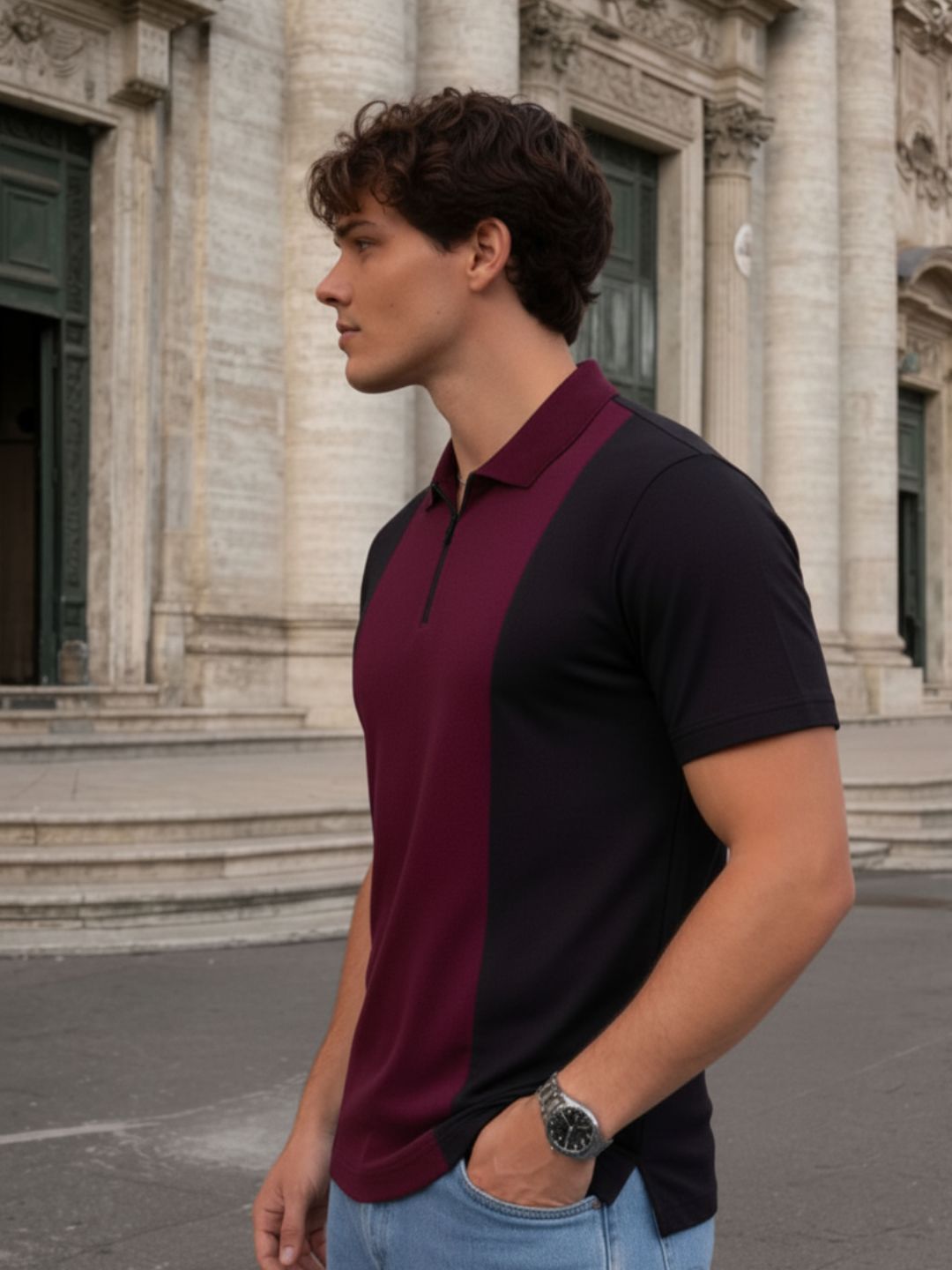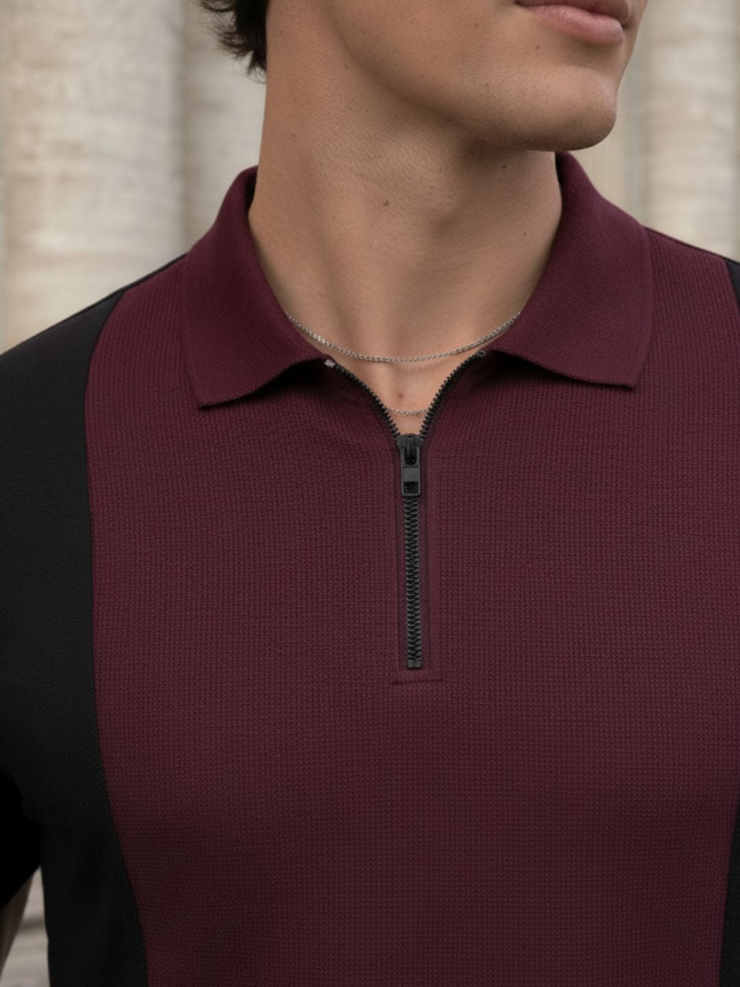 Wine Pique Cut Away Collar Regular Fit Polo T-Shirt