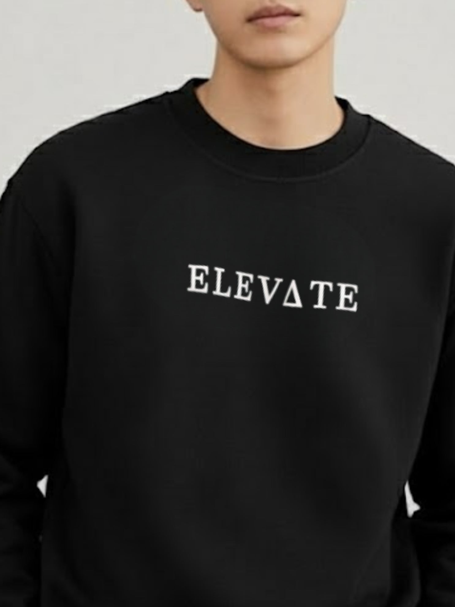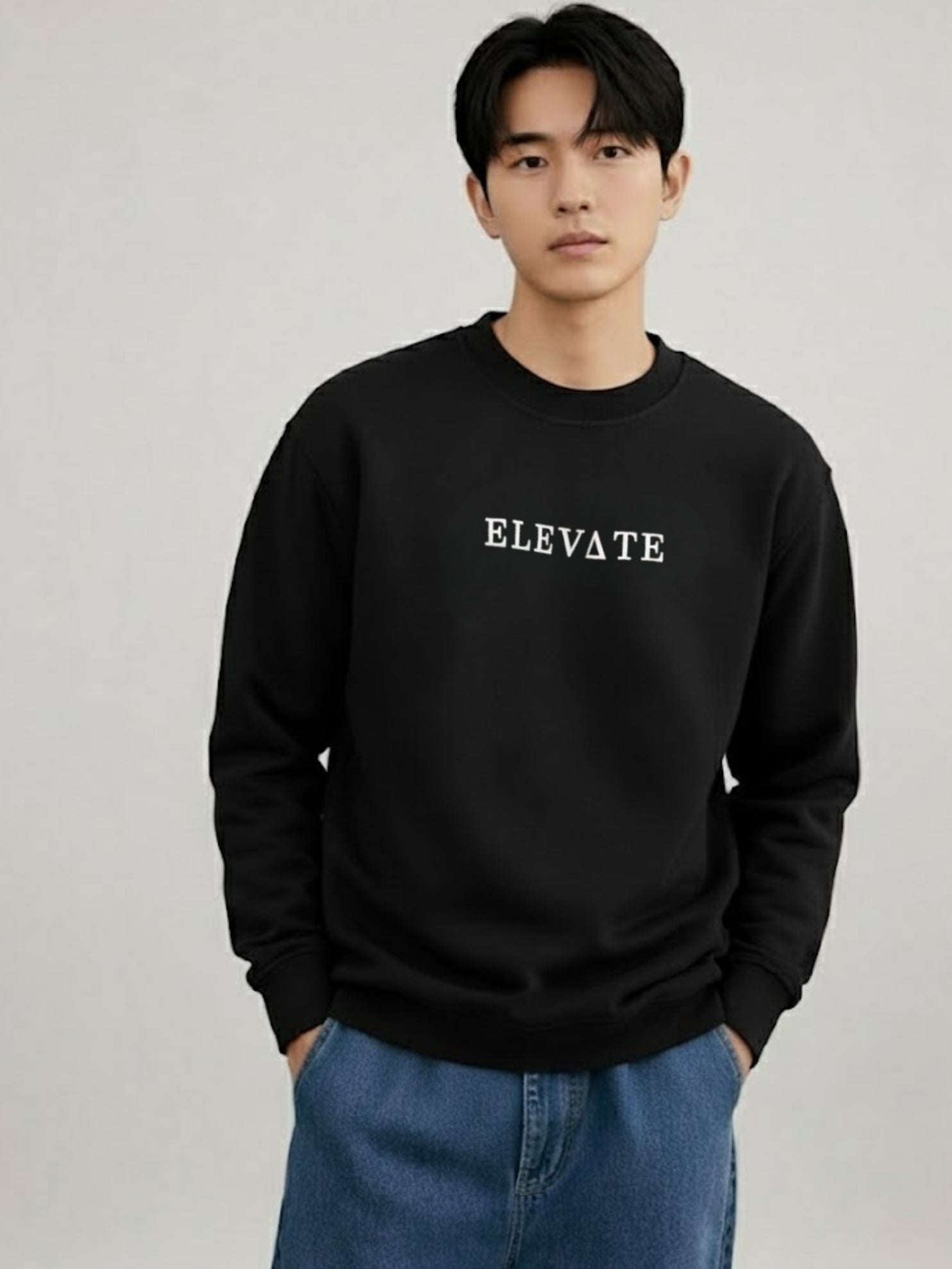 Black Fleece Round Neck Regular Fit Sweatshirt