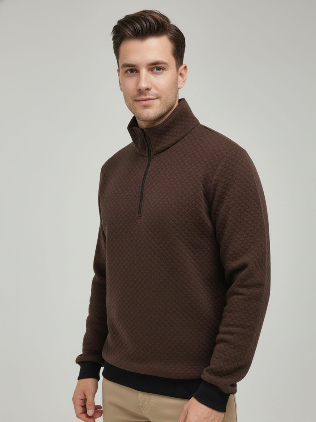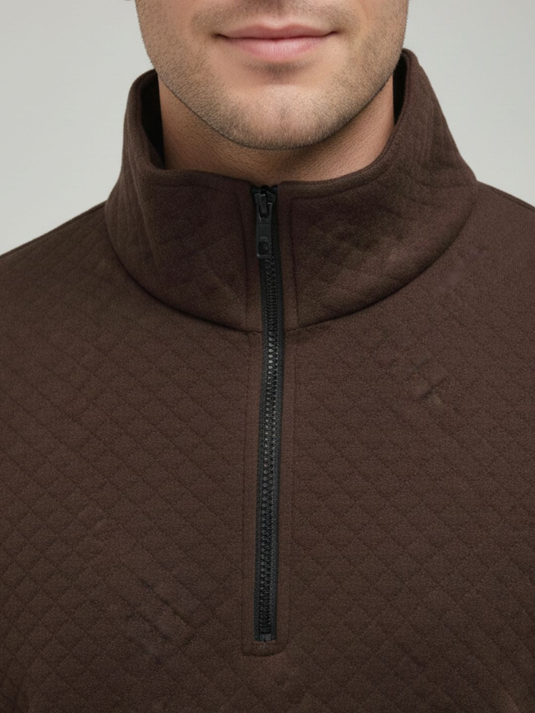 Brown Quilted Regular Fit Sweatshirt