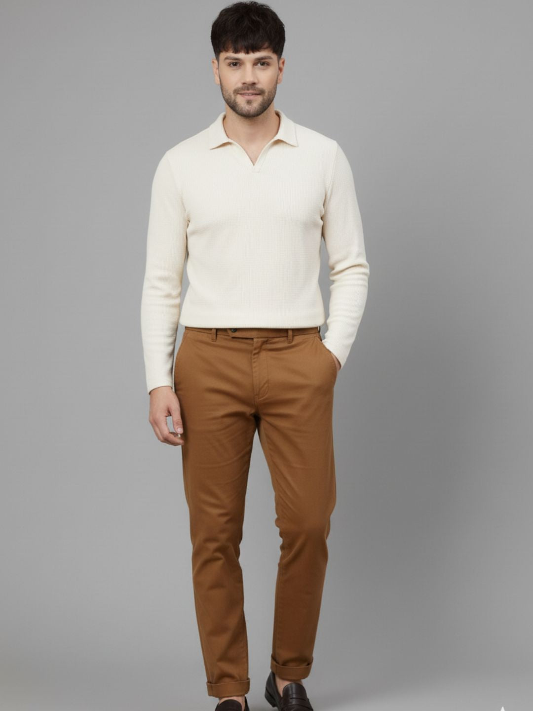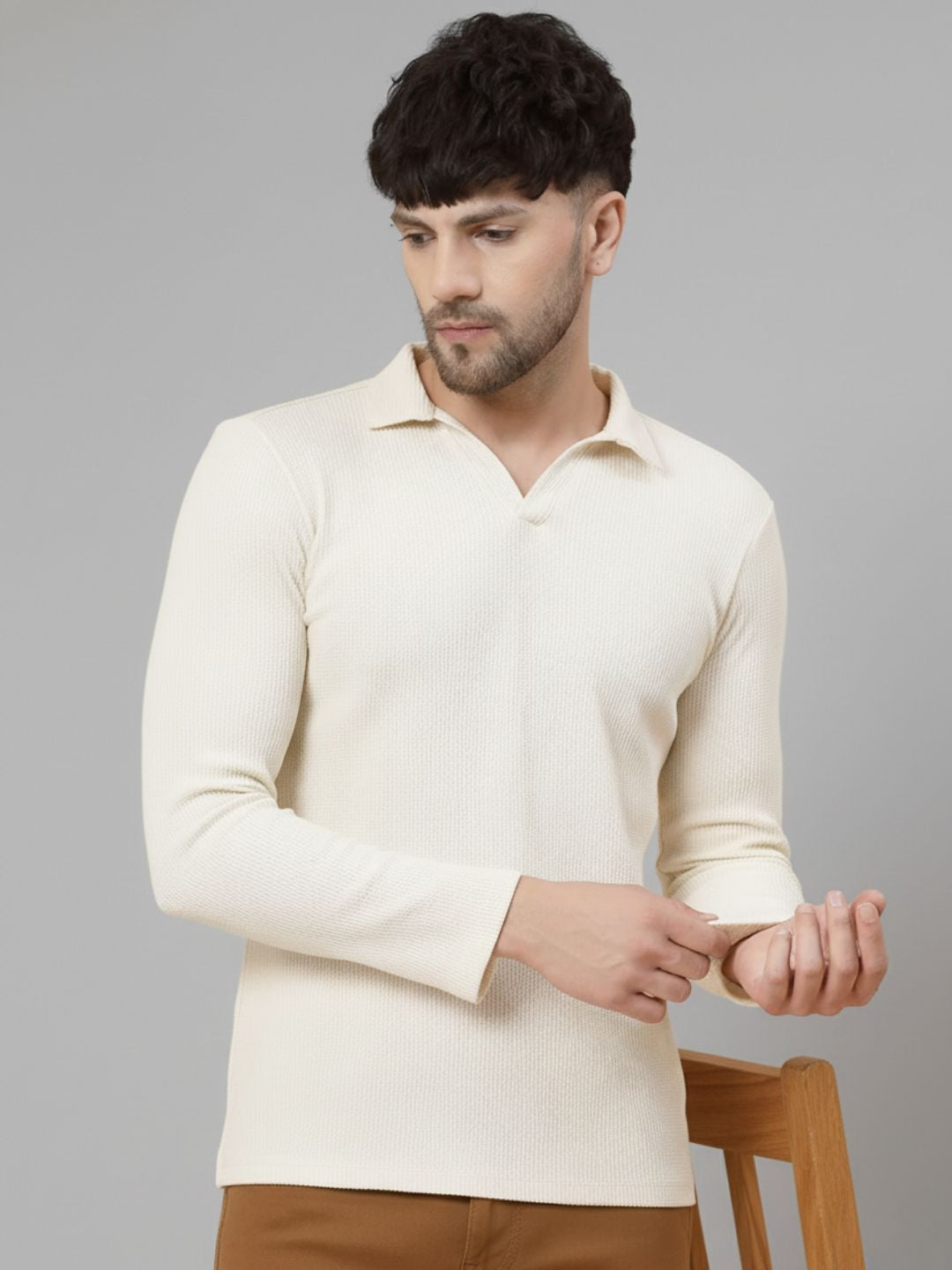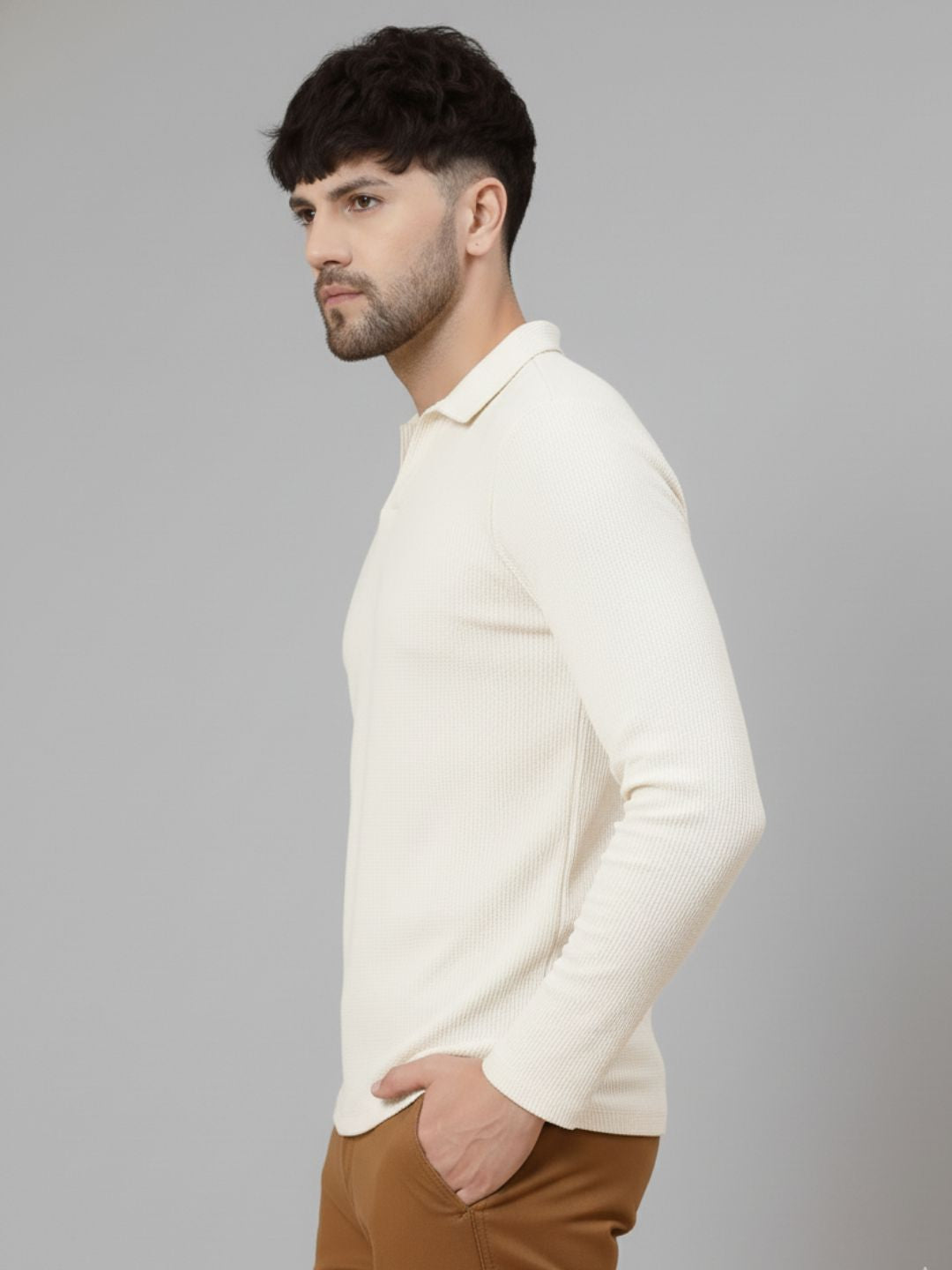 Off White Waffle Regular Fit Polo T Shirt