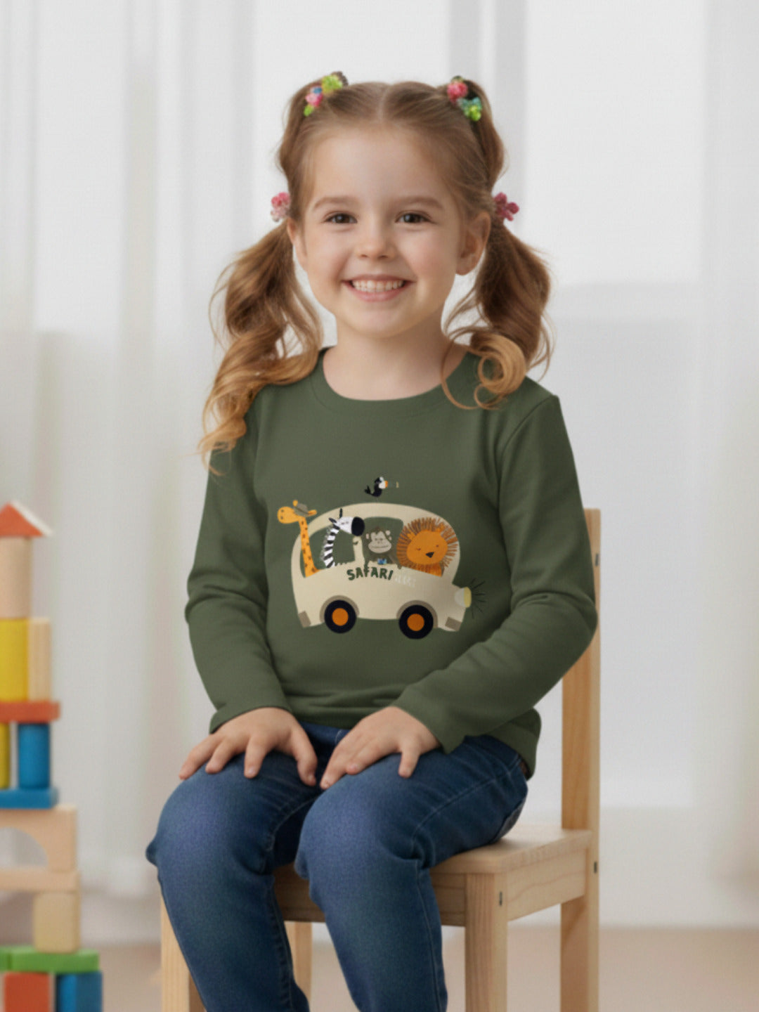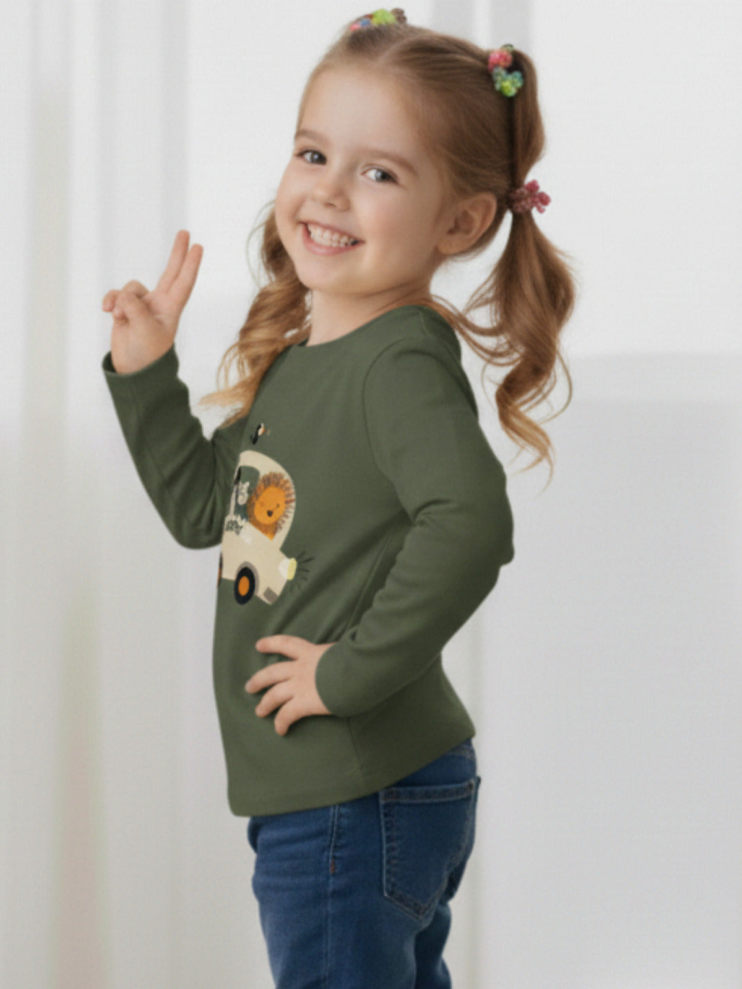 Army Green Animal Print Regular Fit T Shirt