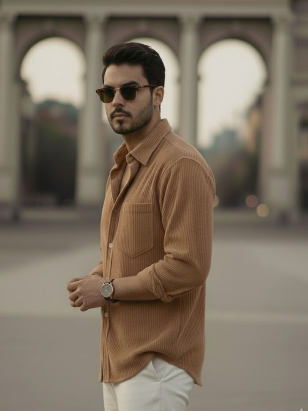 Brown Corduroy Oversized Full Sleeves Shirt