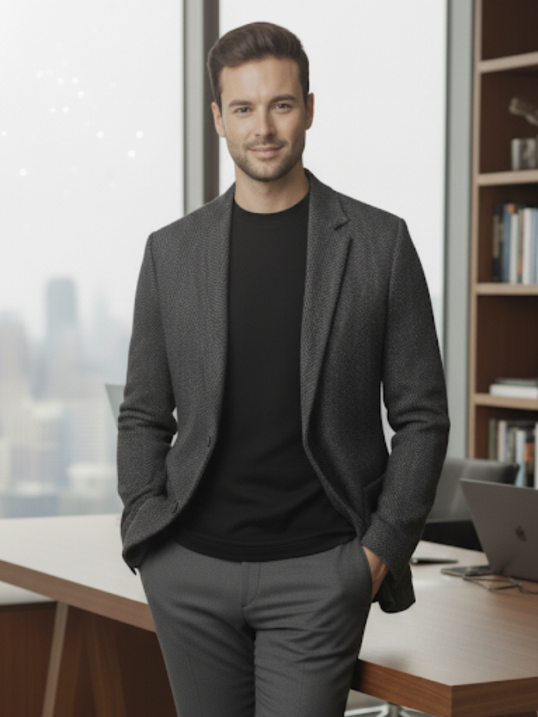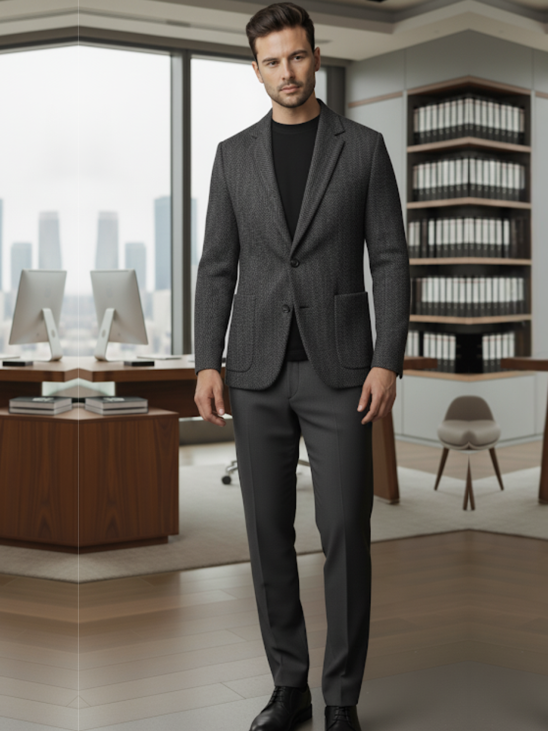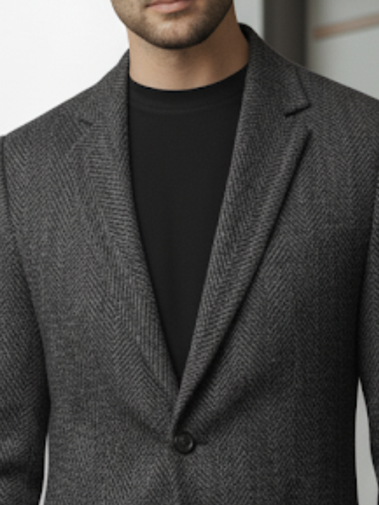 Charcoal Herringbone Regular Fit Coat