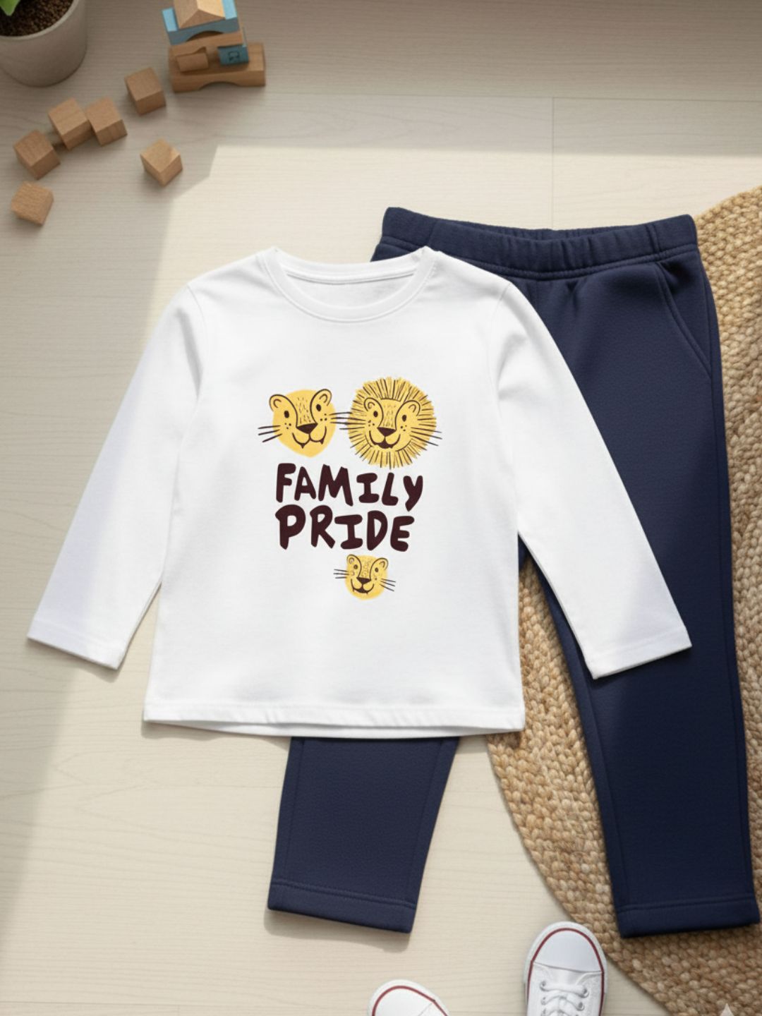Family Pride Print T-shirt With Trouser Co-ord Set