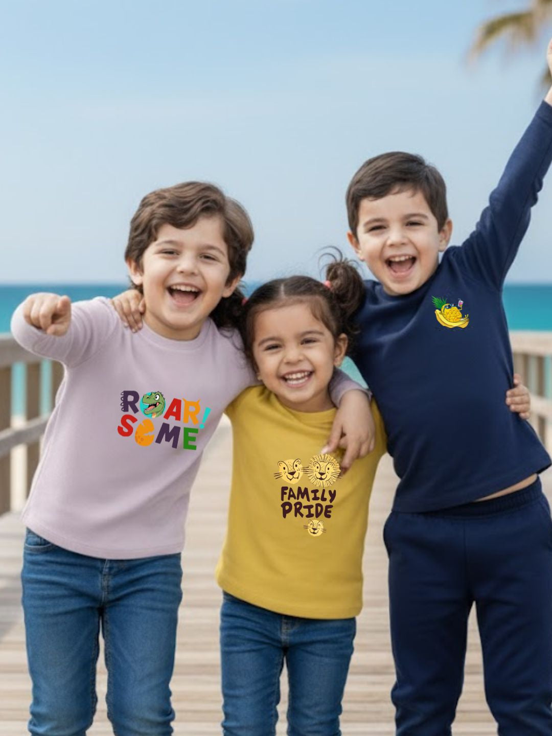 Light Purple, Navy and Yellow Printed Regular Fit T Shirts- Pack of 3