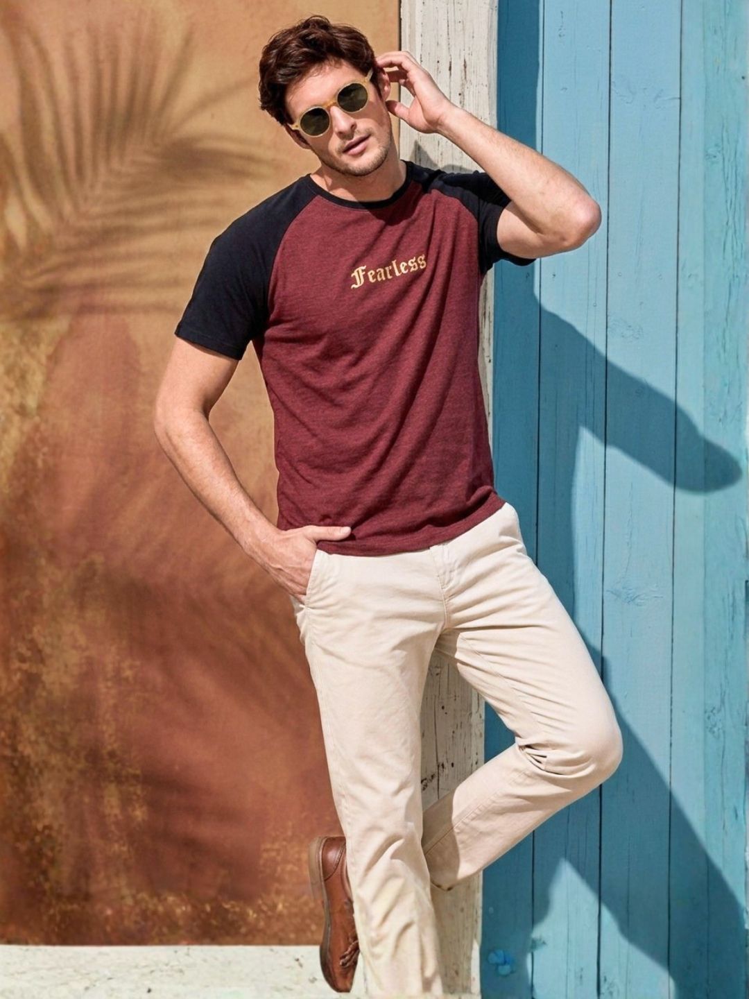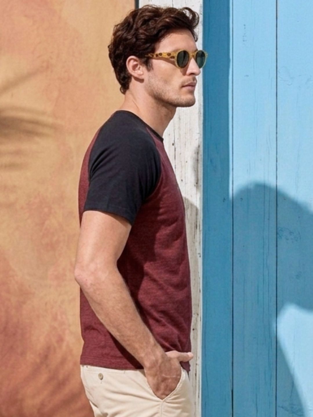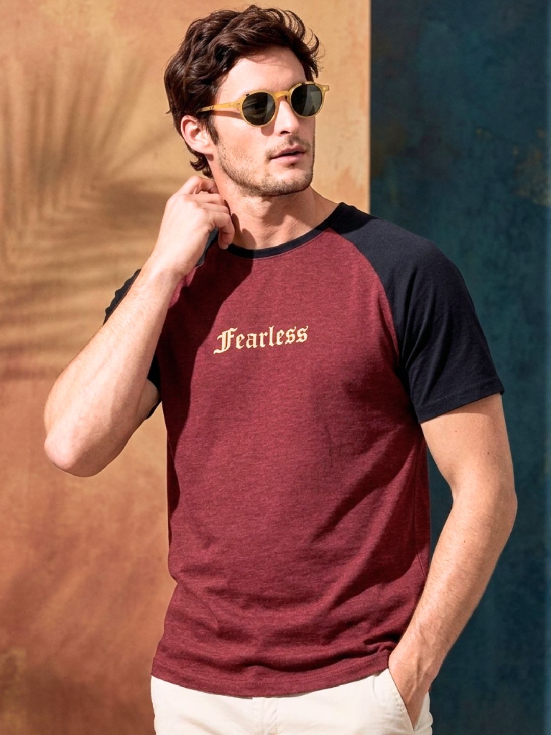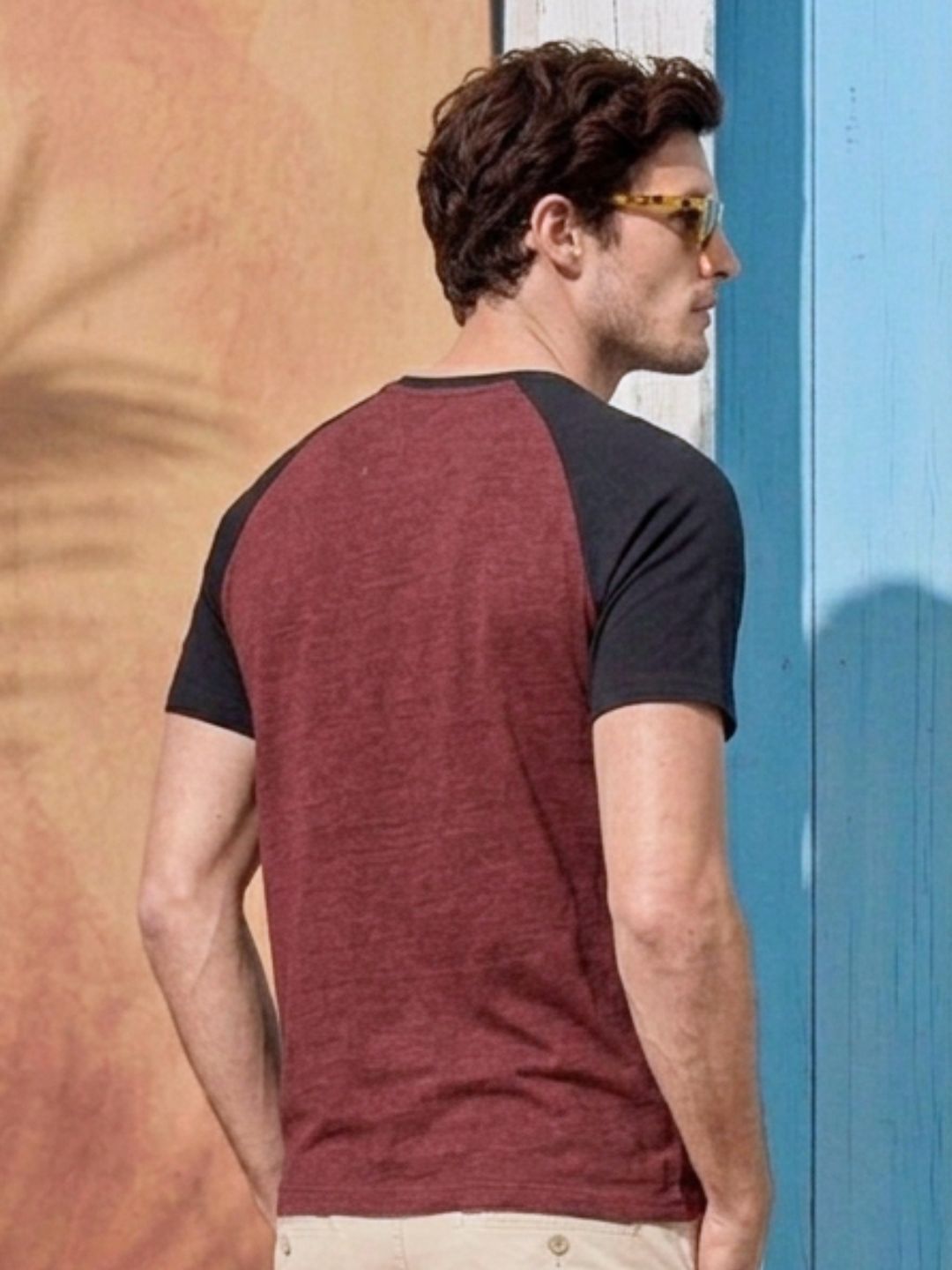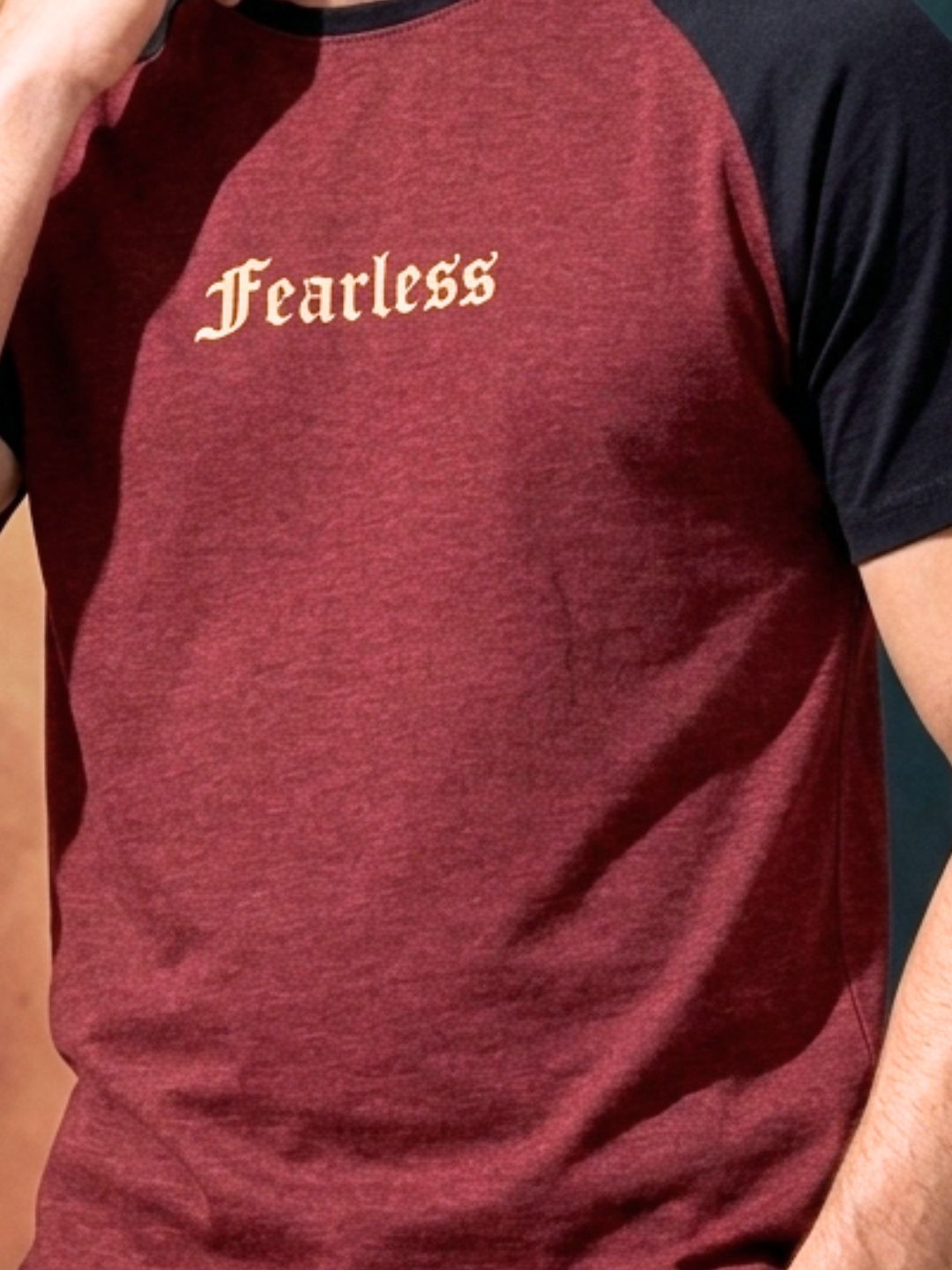 Maroon Jersey Colorblock Round Neck Oversized T-Shirt
