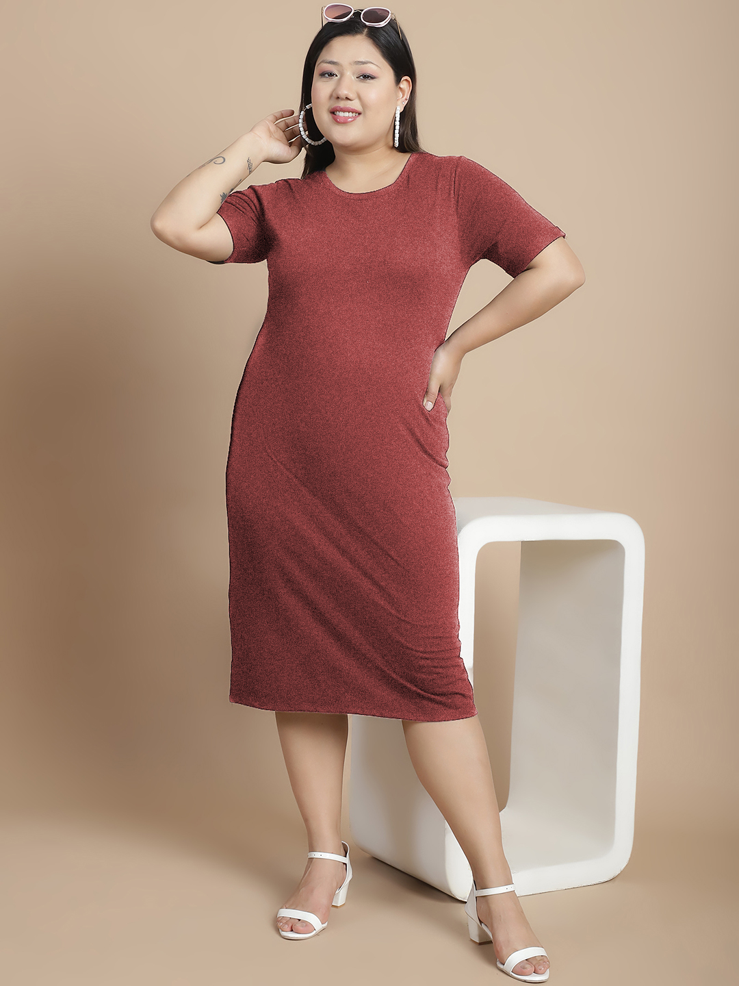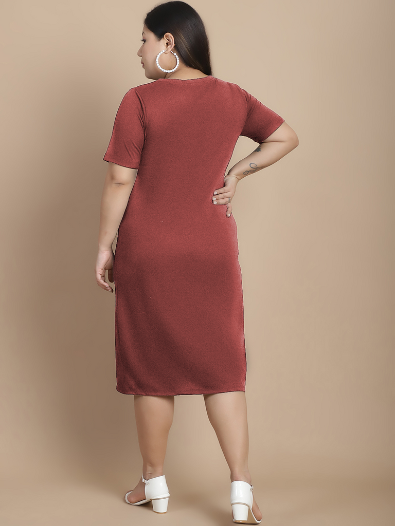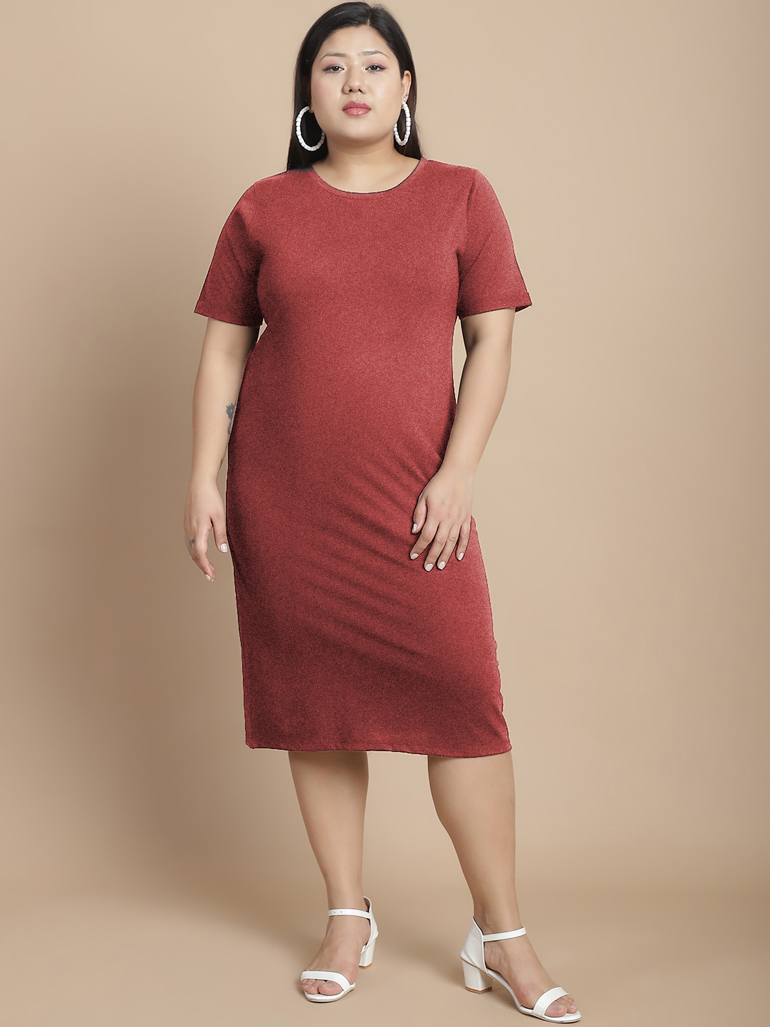 Maroon Solid Slim Fit Plus Size Bodycon Dress