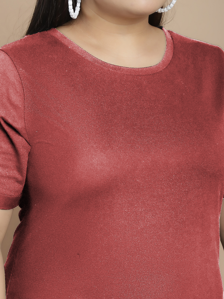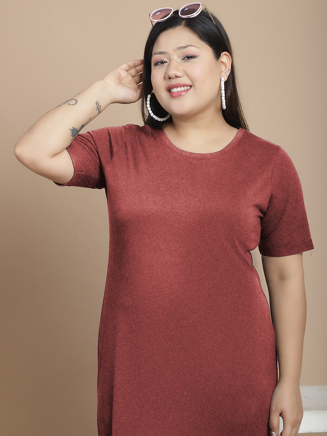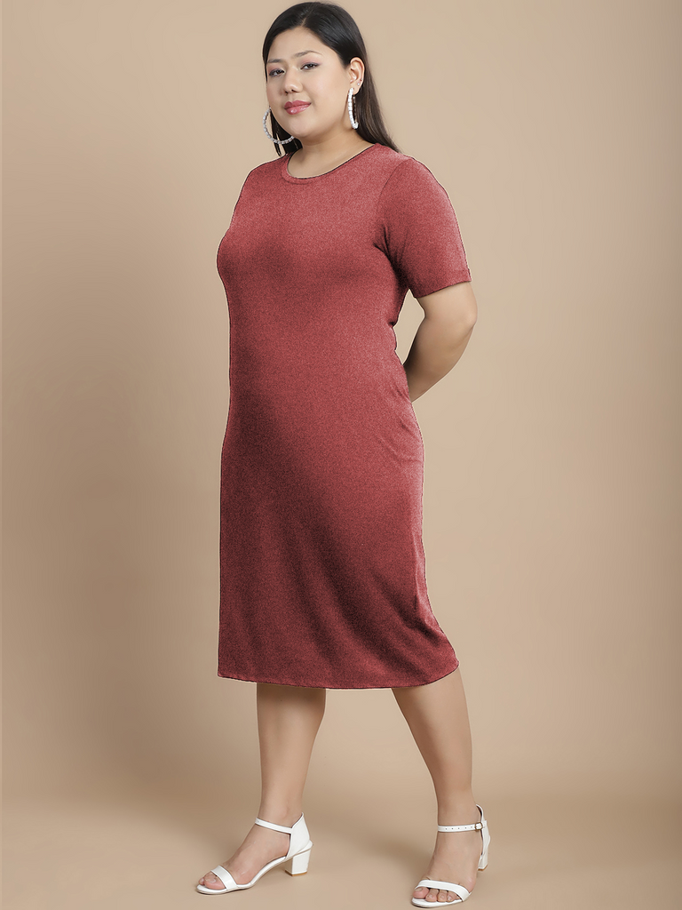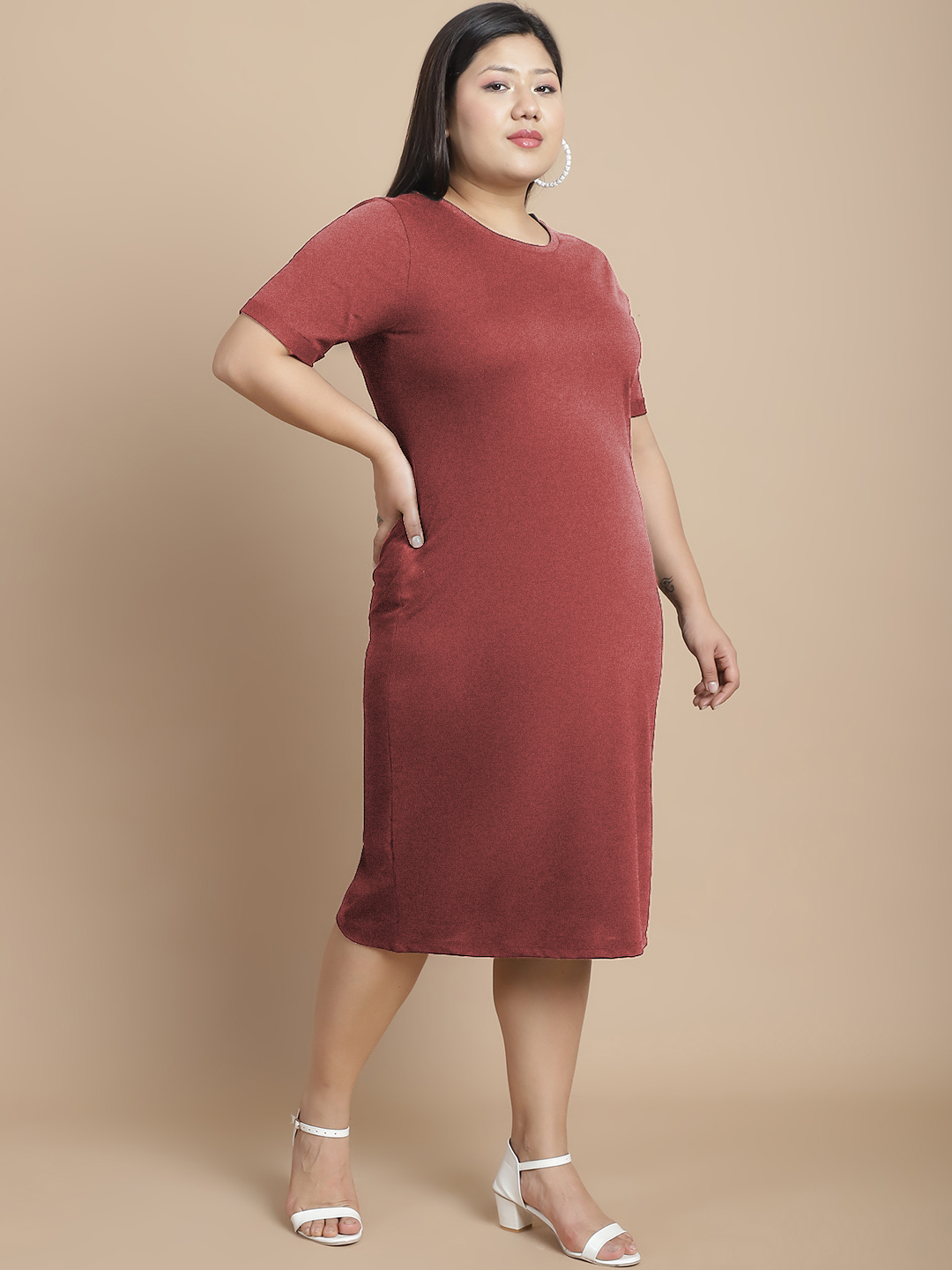 Maroon Solid Slim Fit Plus Size Bodycon Dress