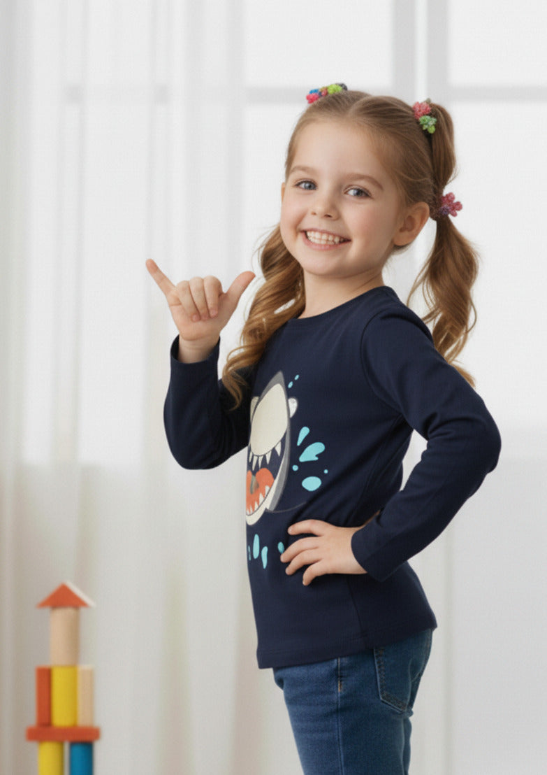 Navy Blue Animal Print Regular Fit T Shirt
