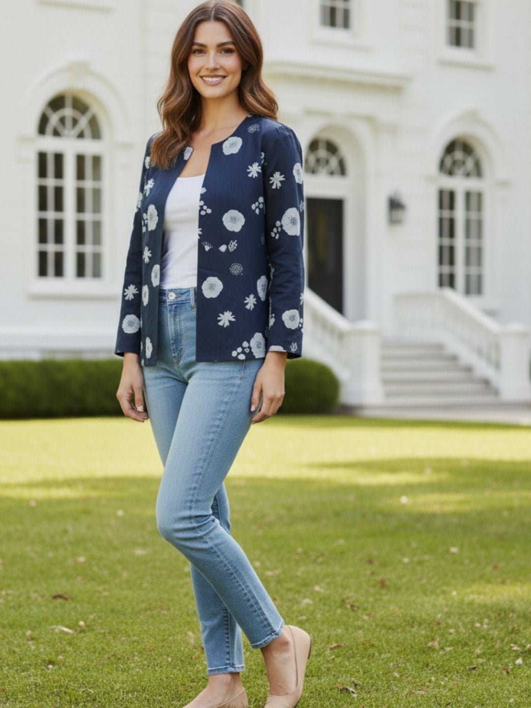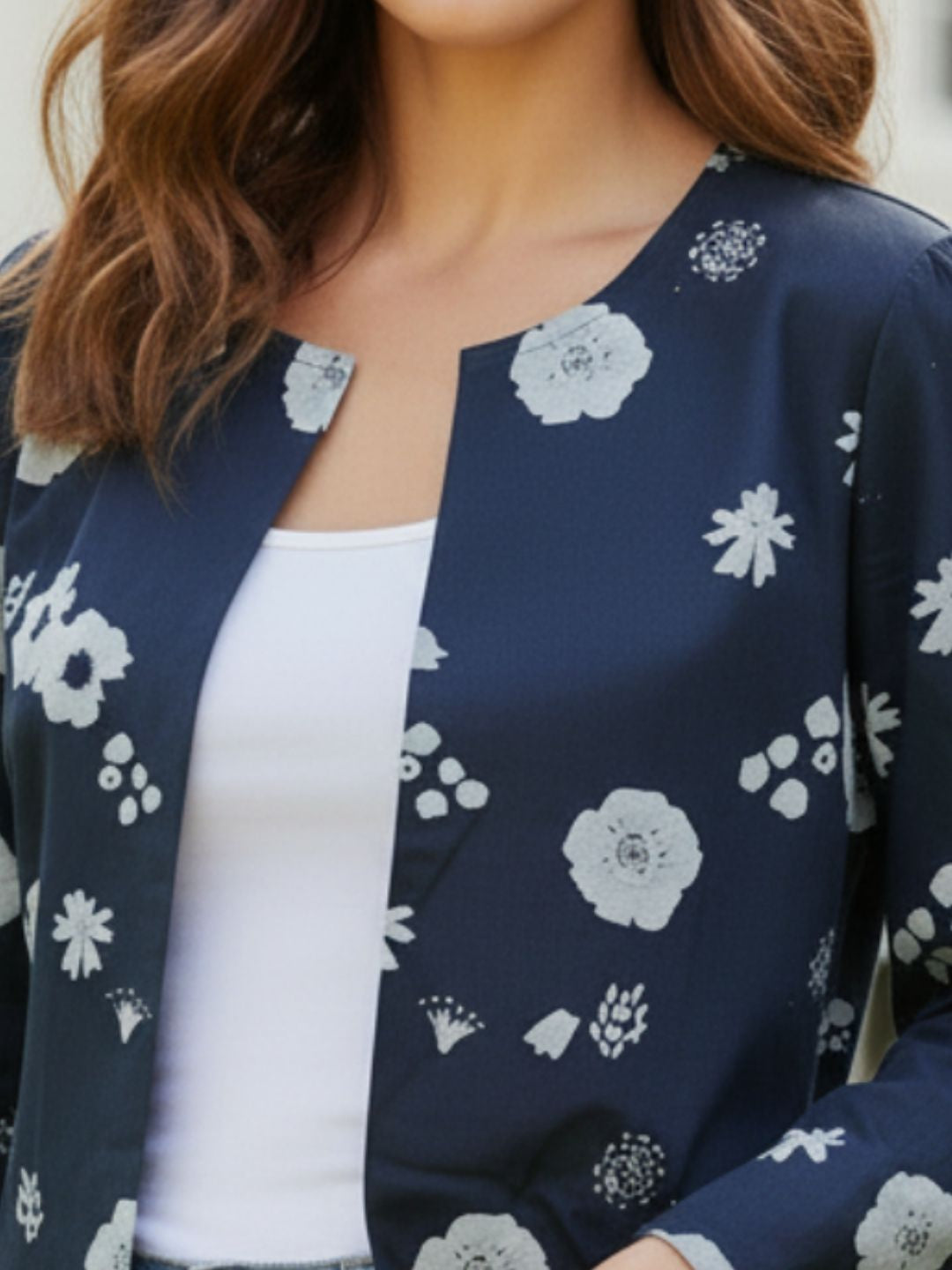 Navy Blue Cotton Poplin Printed Shrug