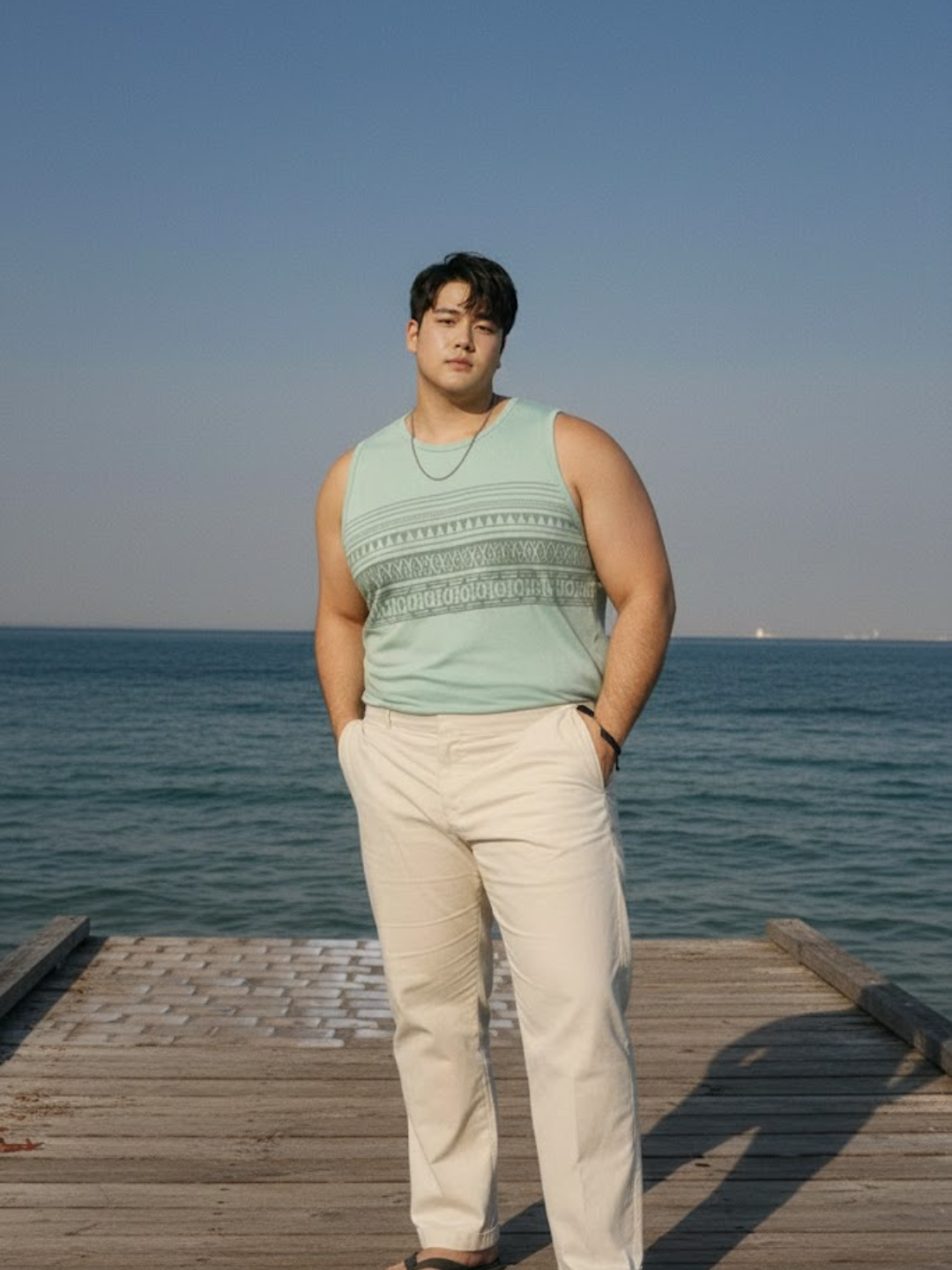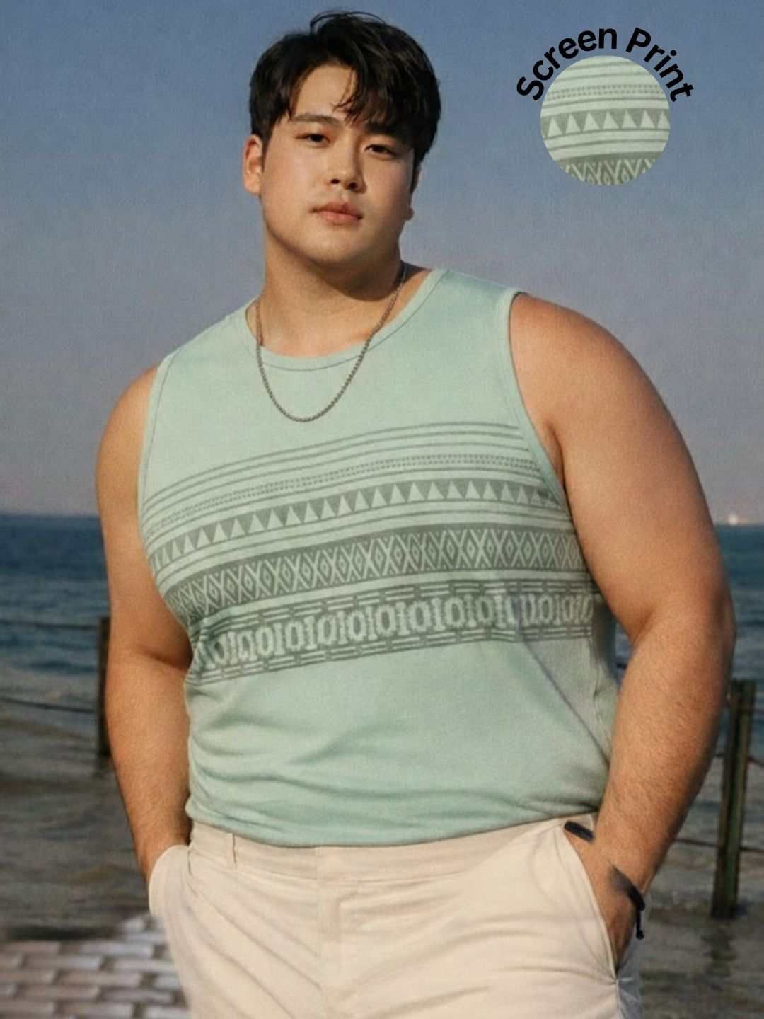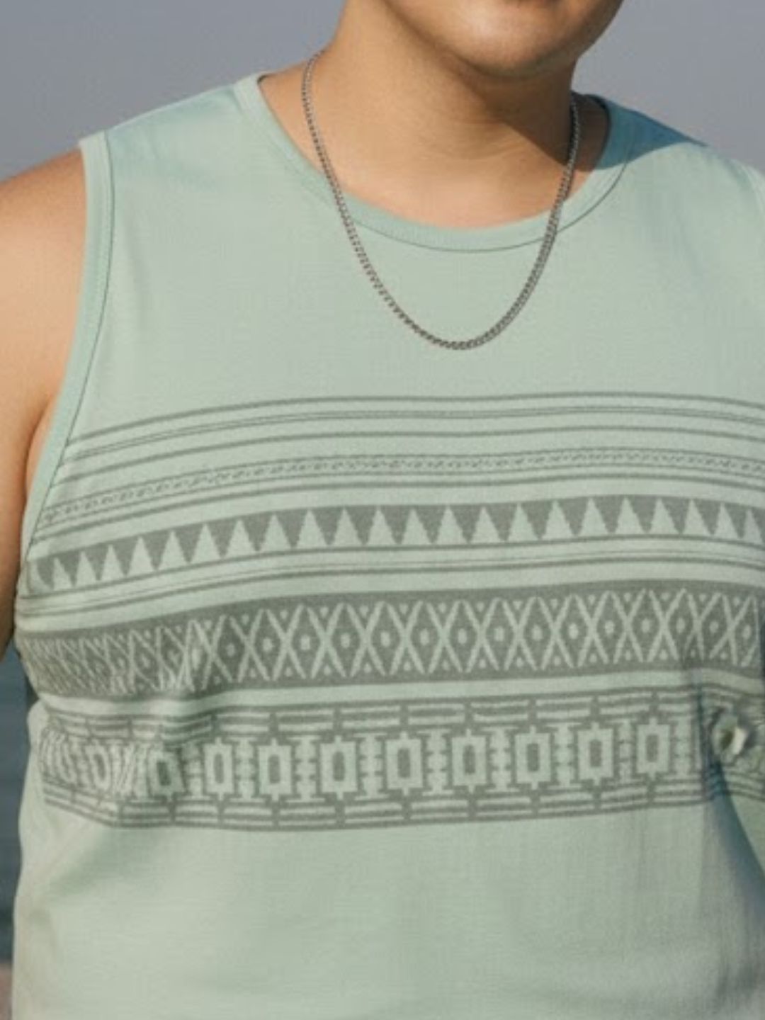 Plus Size Jade Green Jersey Geometric Print Regular Fit Vest