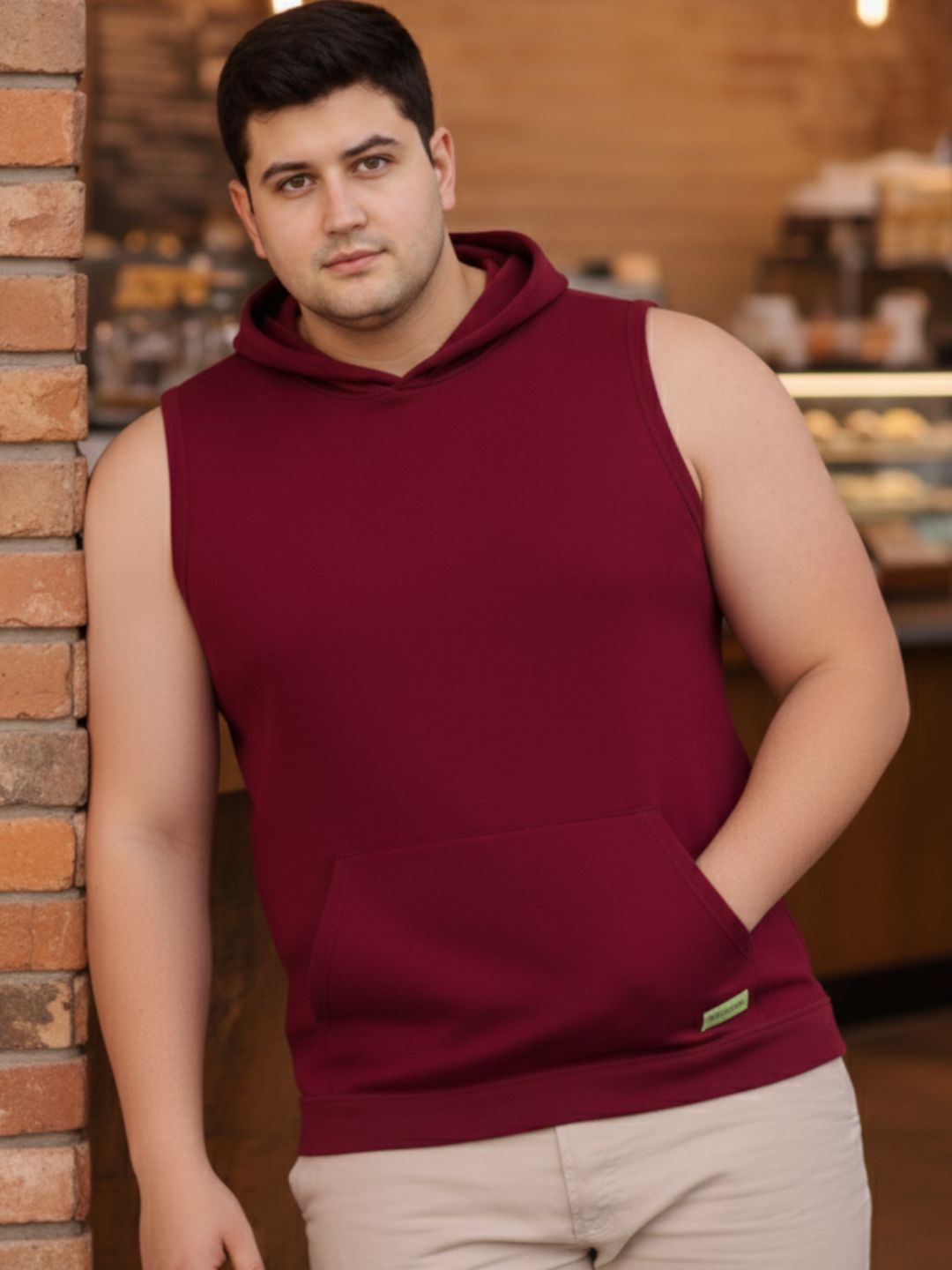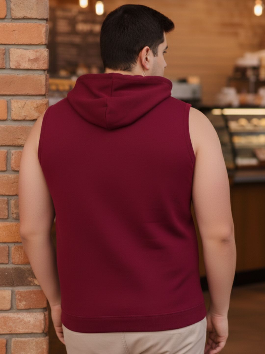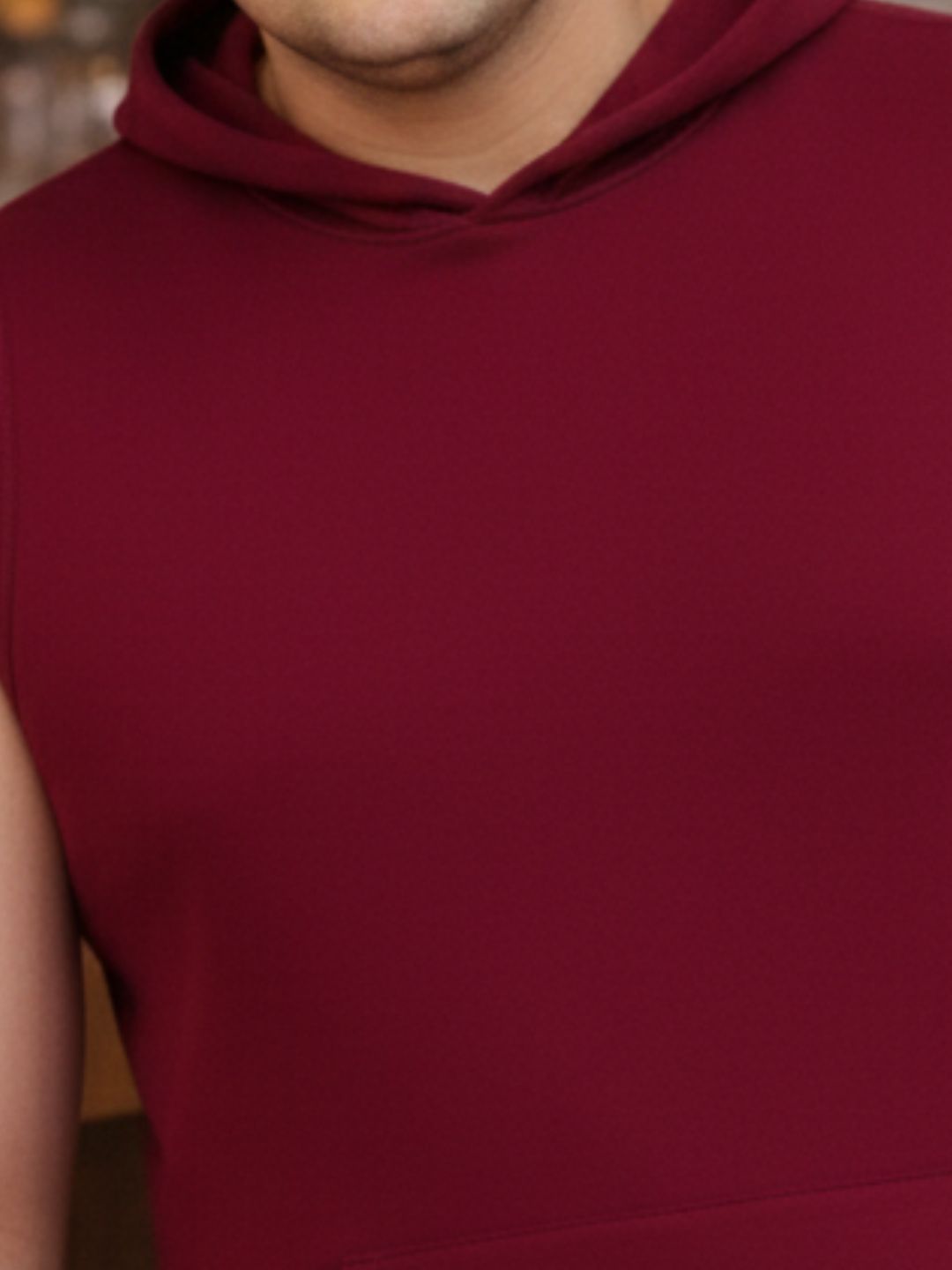 Plus Size Maroon Jersey Solid Regular Fit Hooded Vest
