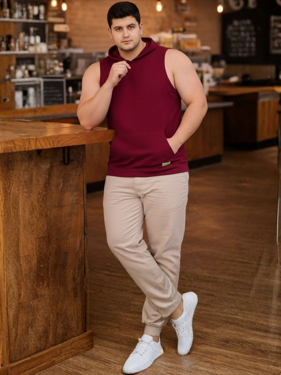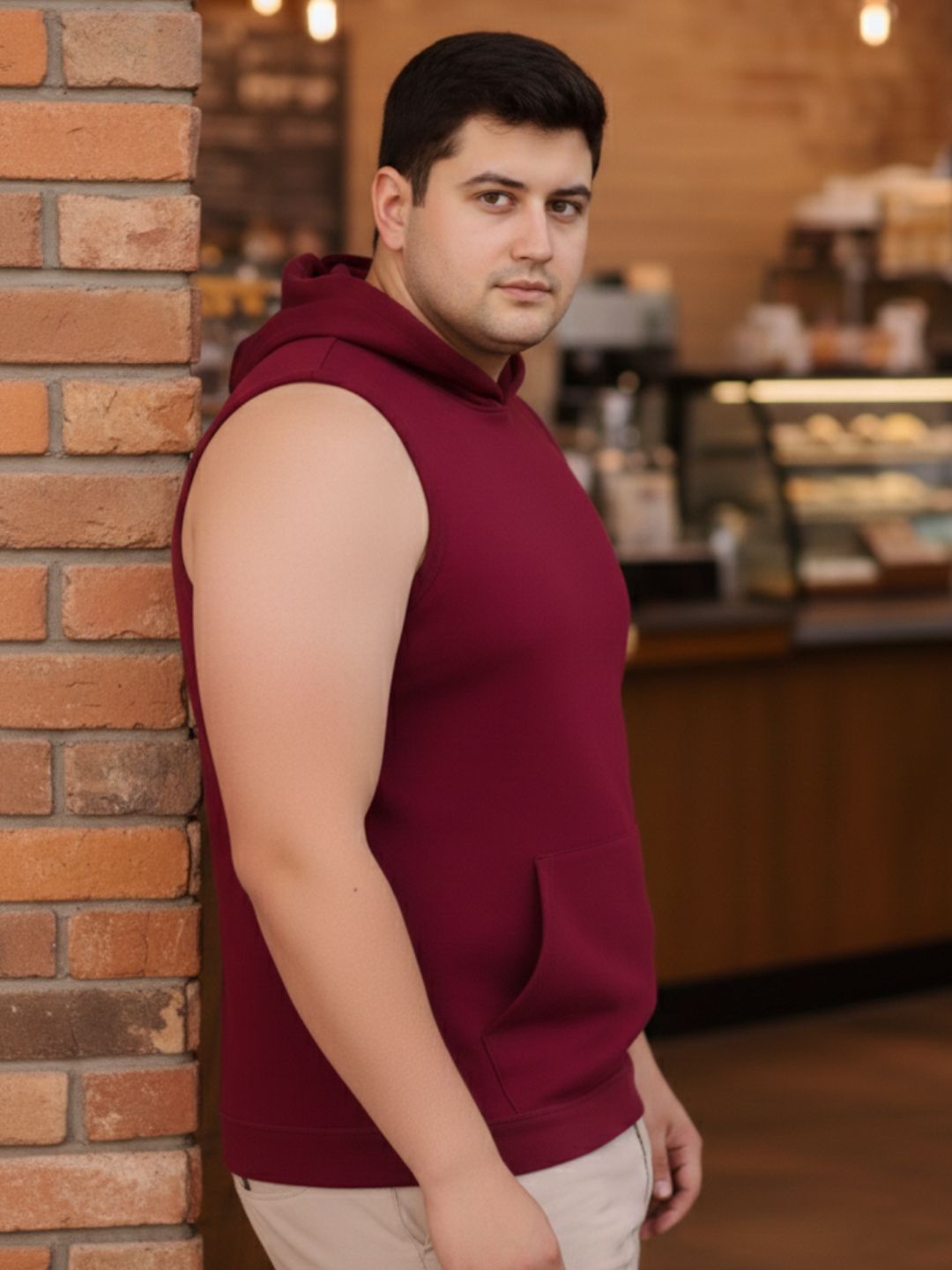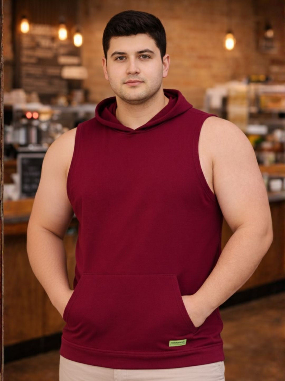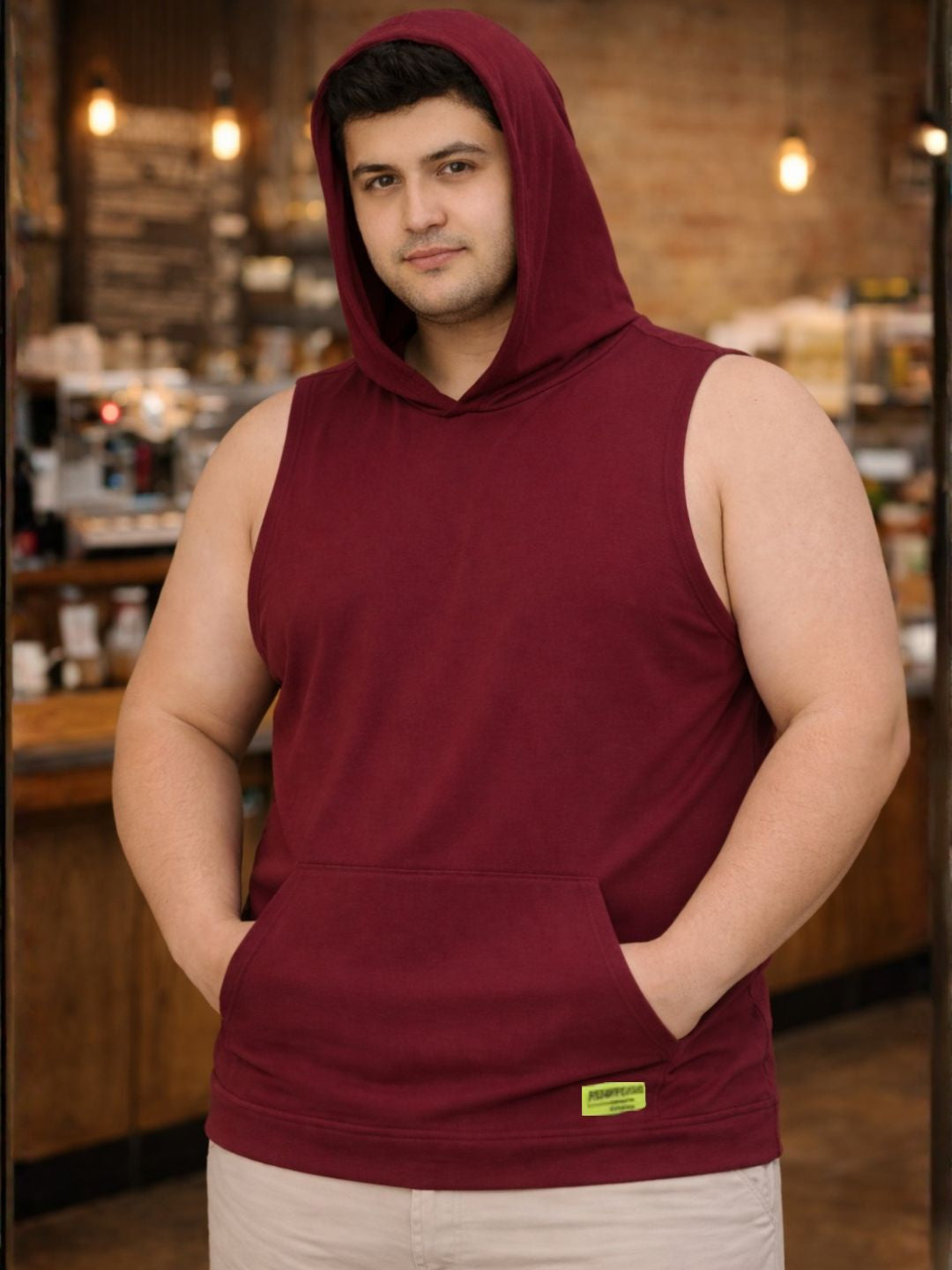 Plus Size Maroon Jersey Solid Regular Fit Hooded Vest