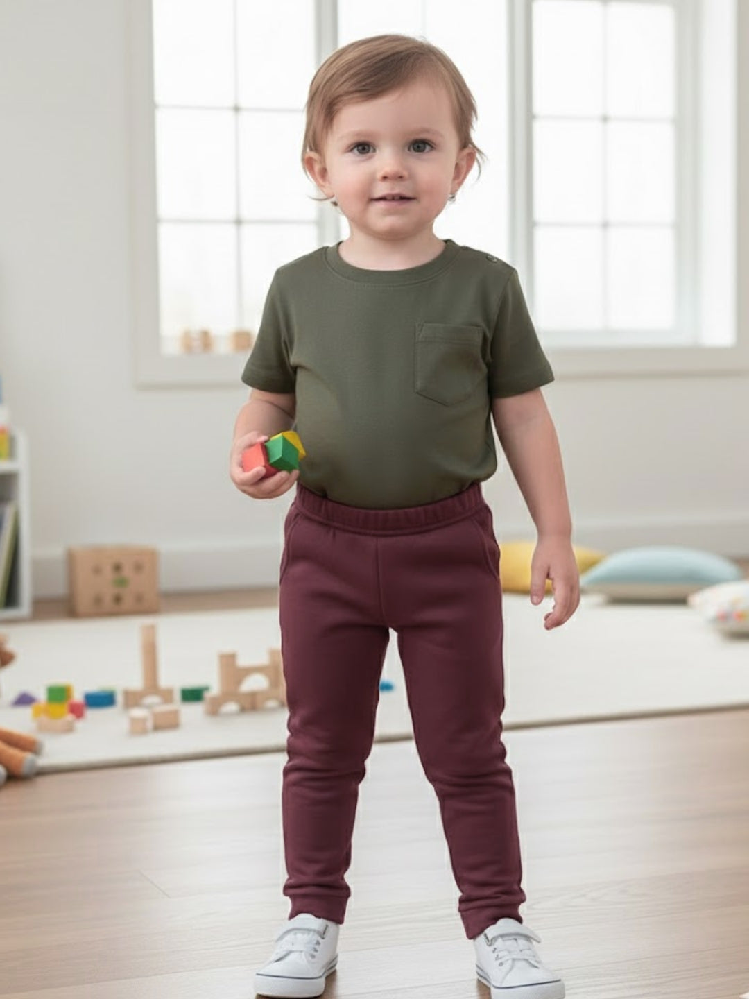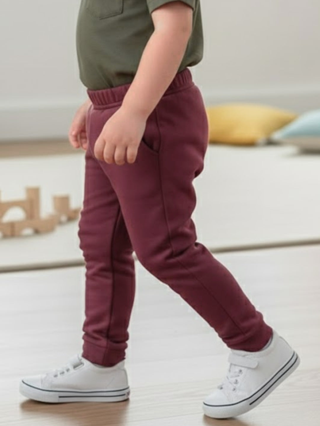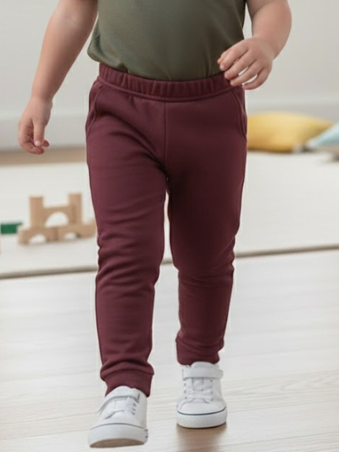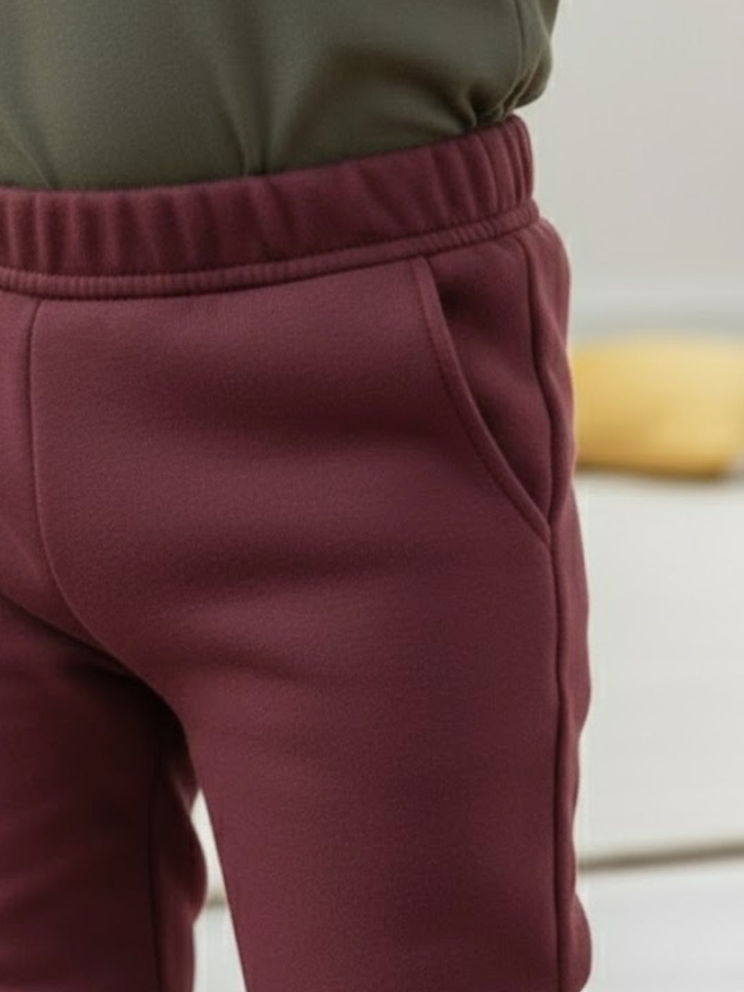 Wine Solid Terry Pants| Soft Elastic Waist Full-Length Pants for Daily Wear