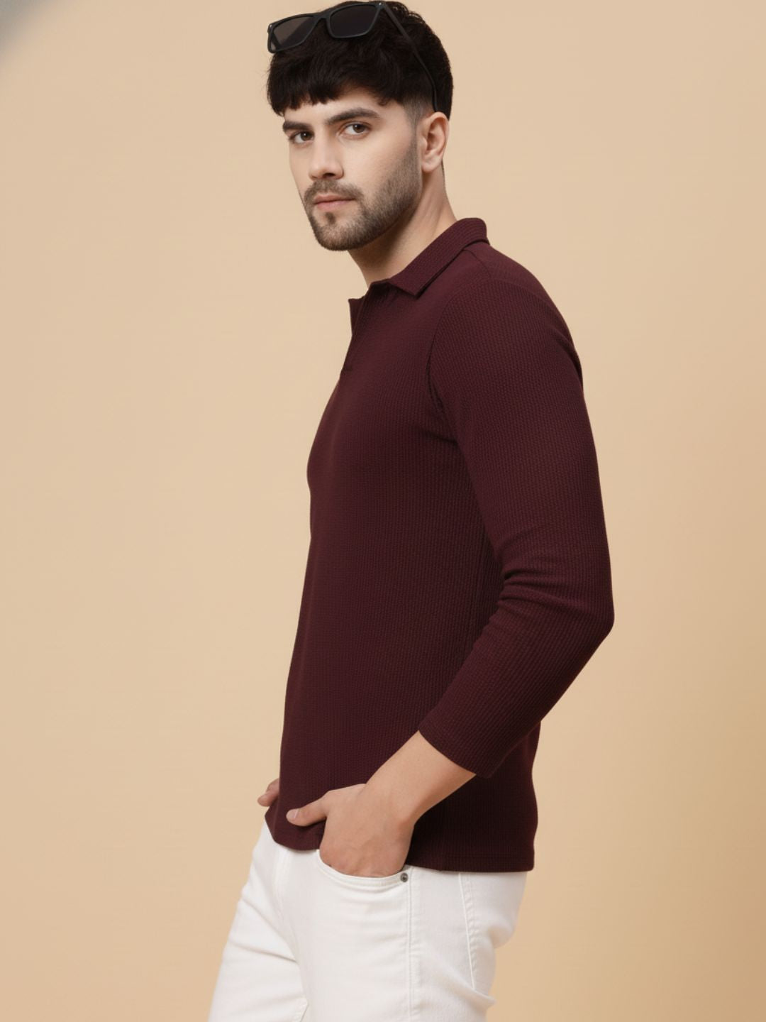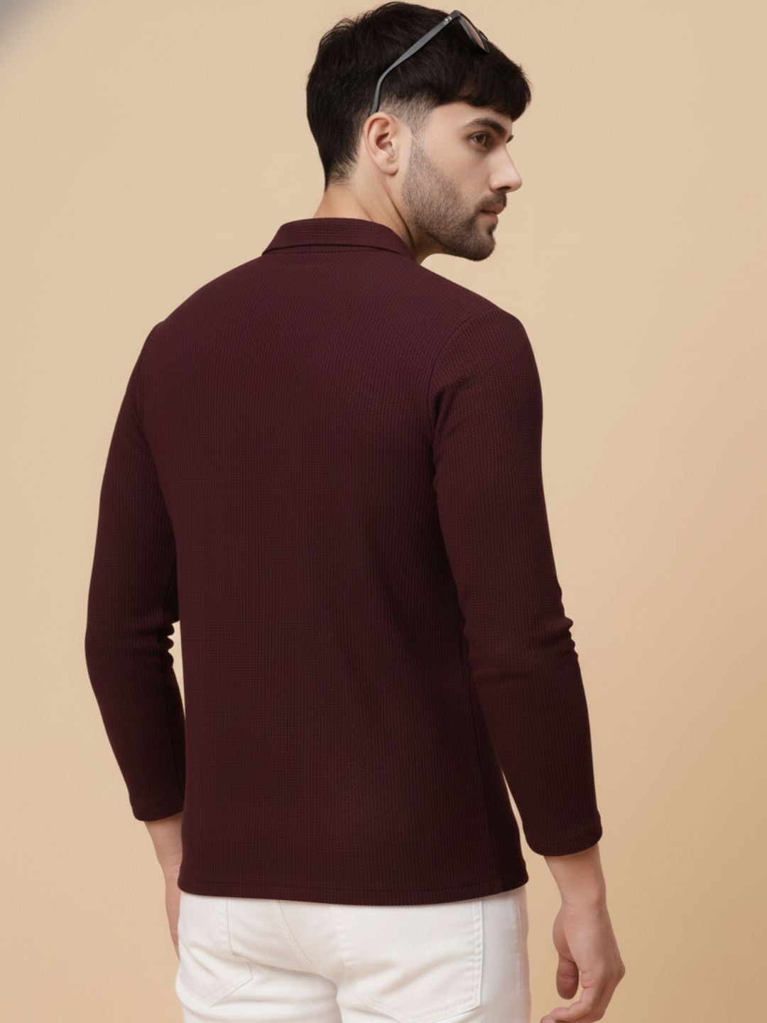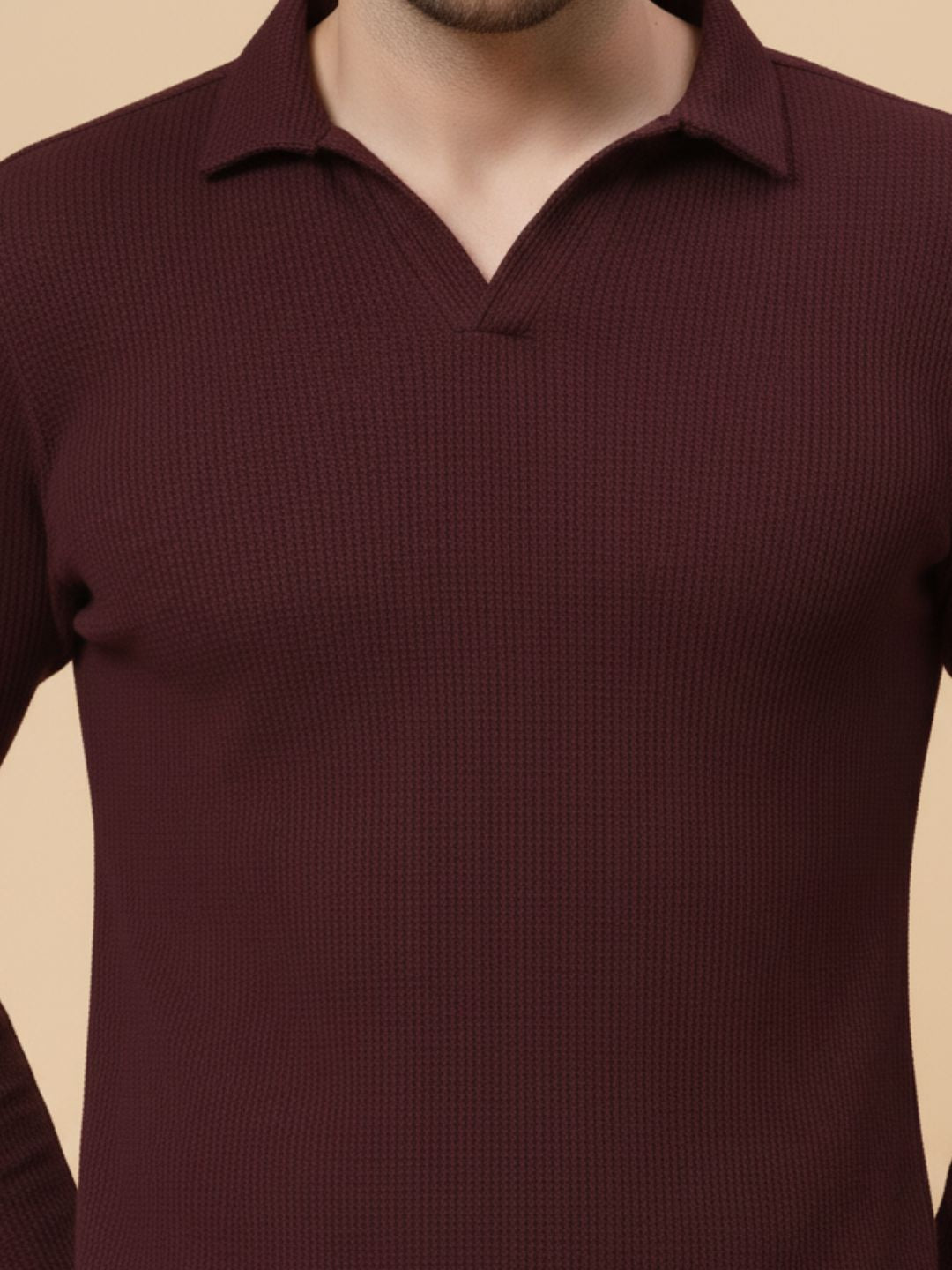 Wine Waffle Regular Fit Polo T Shirt