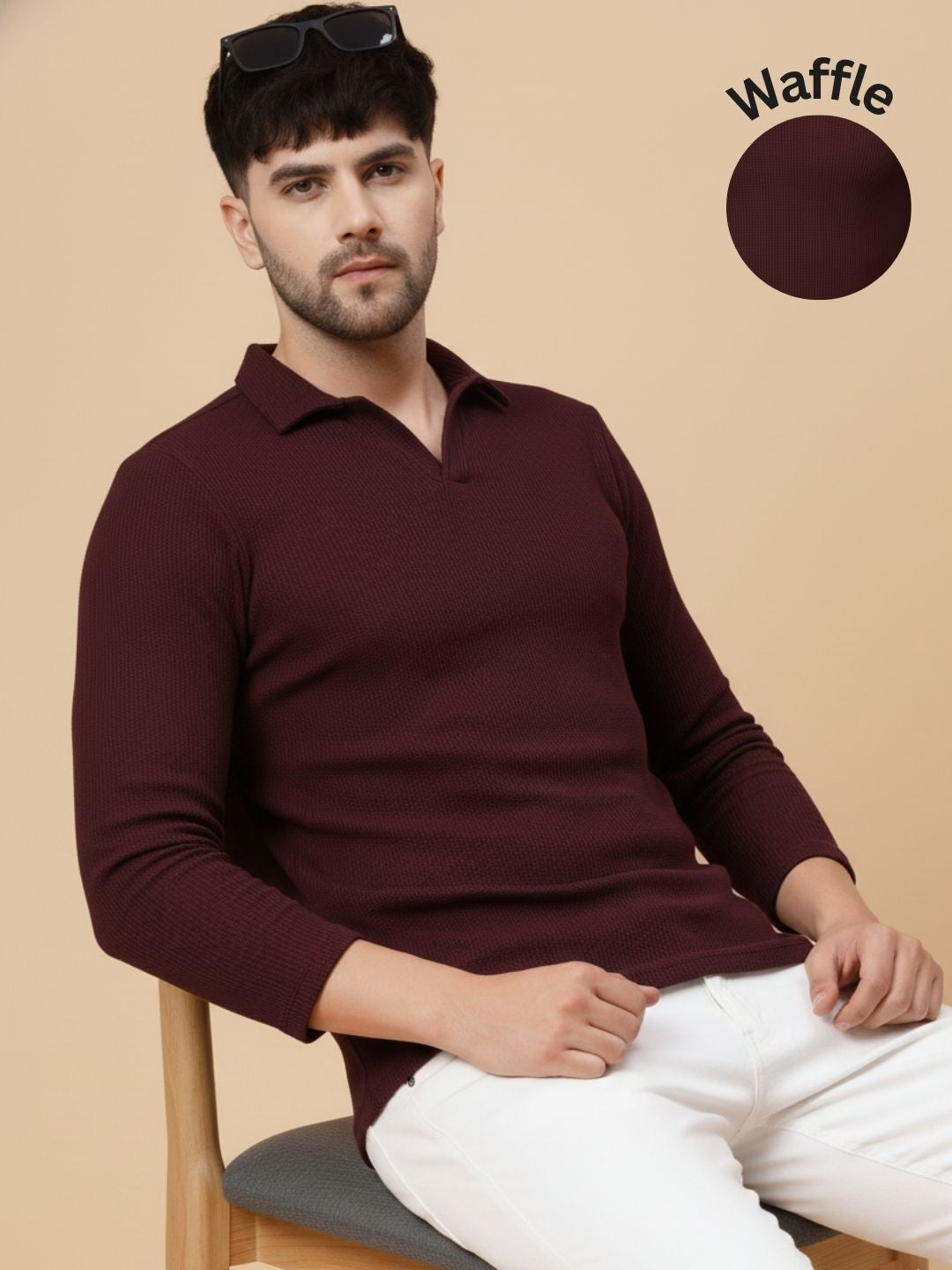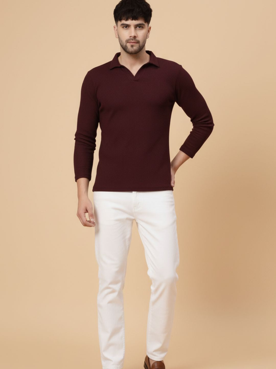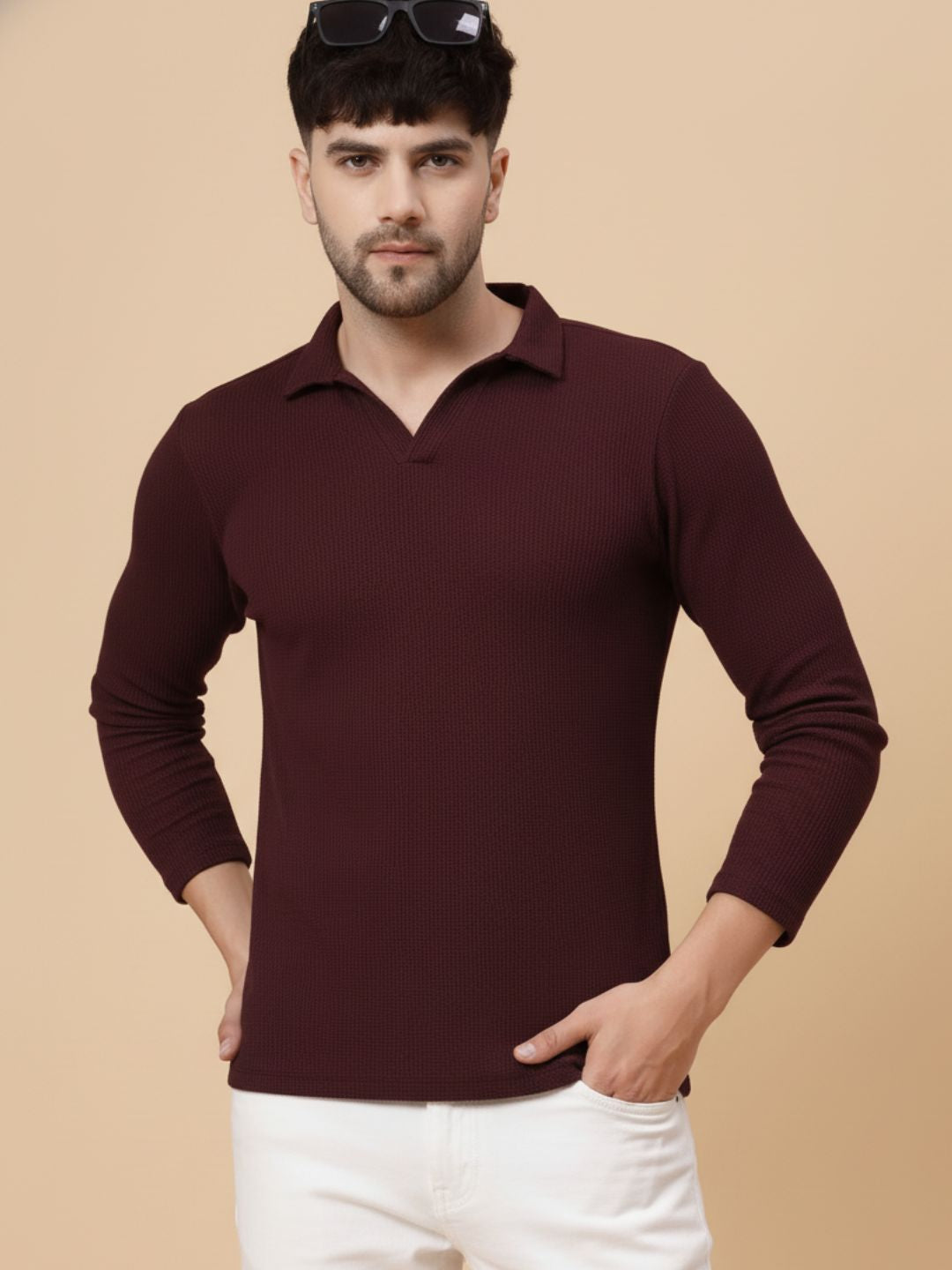 Wine Waffle Regular Fit Polo T Shirt