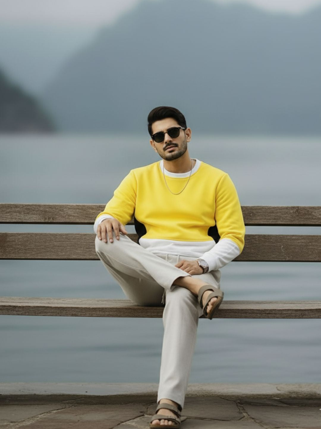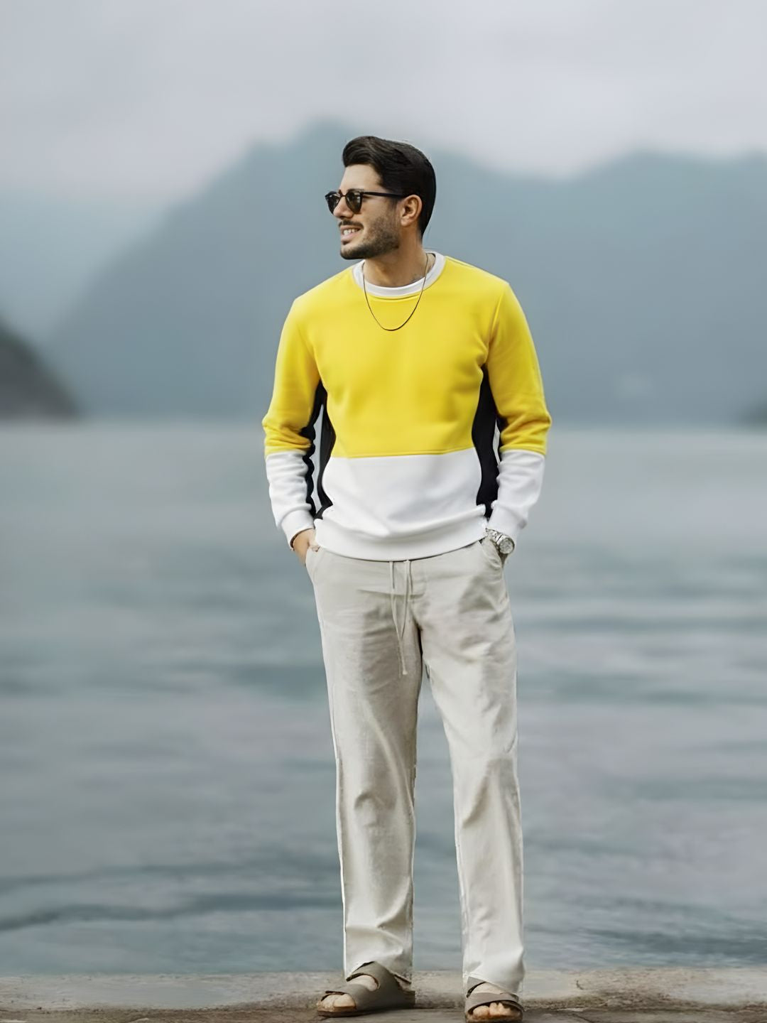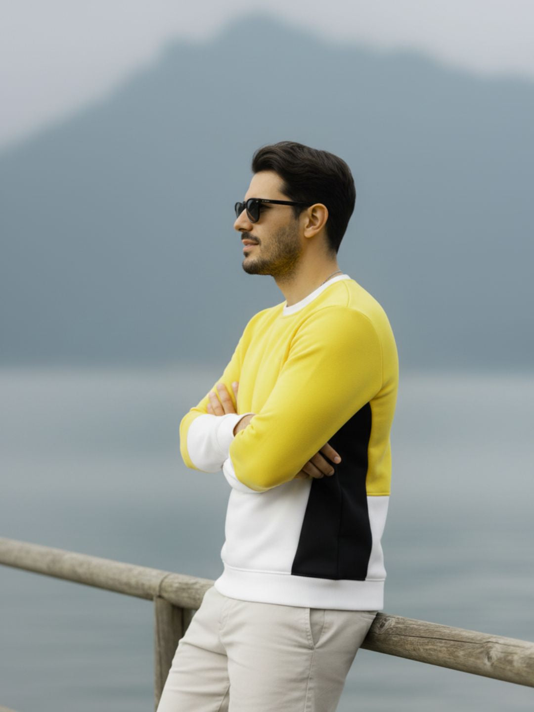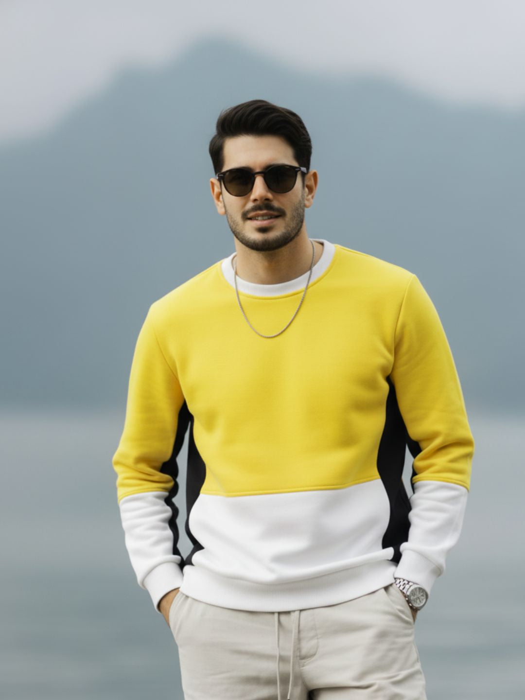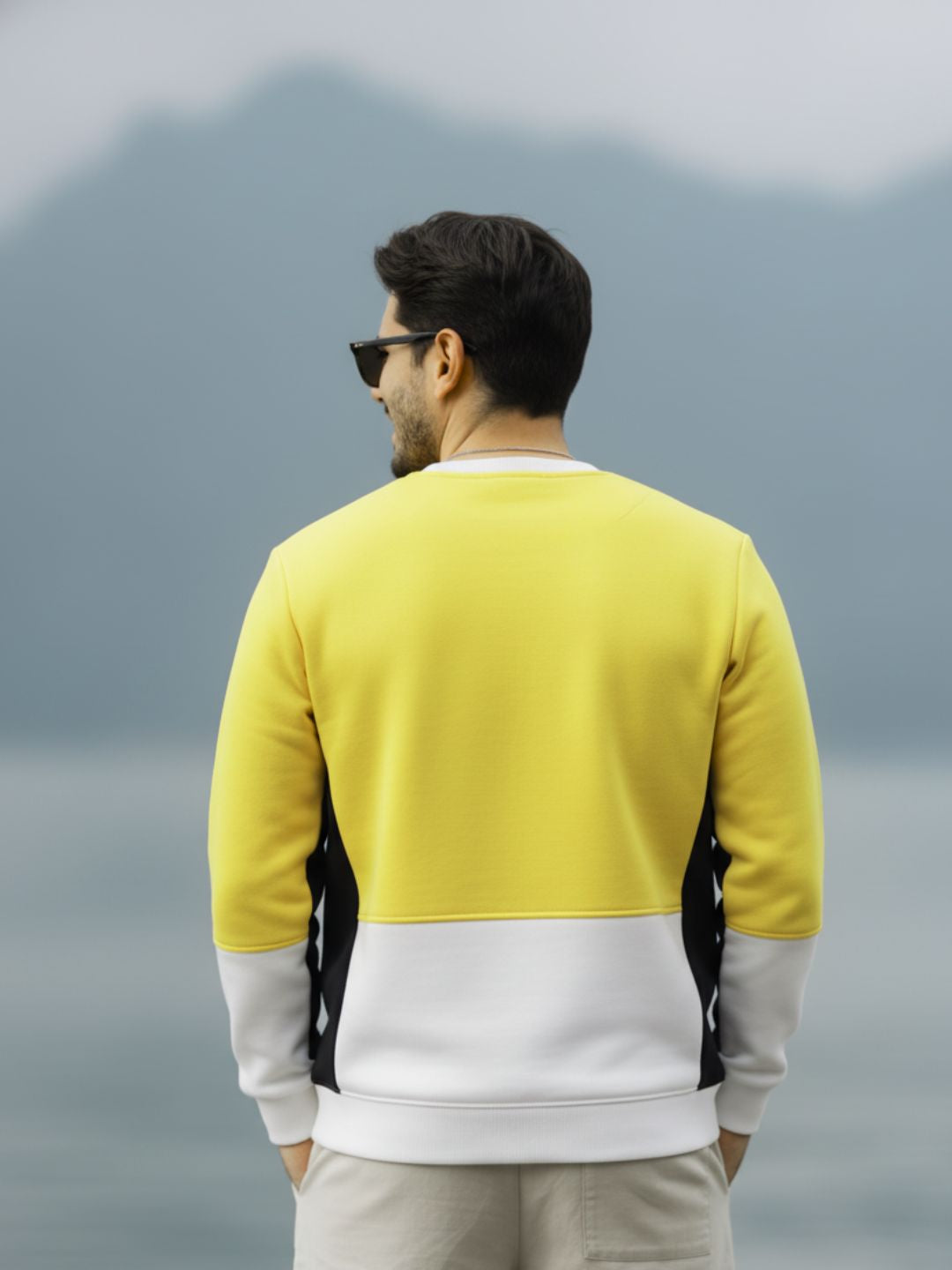 Yellow Colorblock Fleece Oversized Sweatshirt